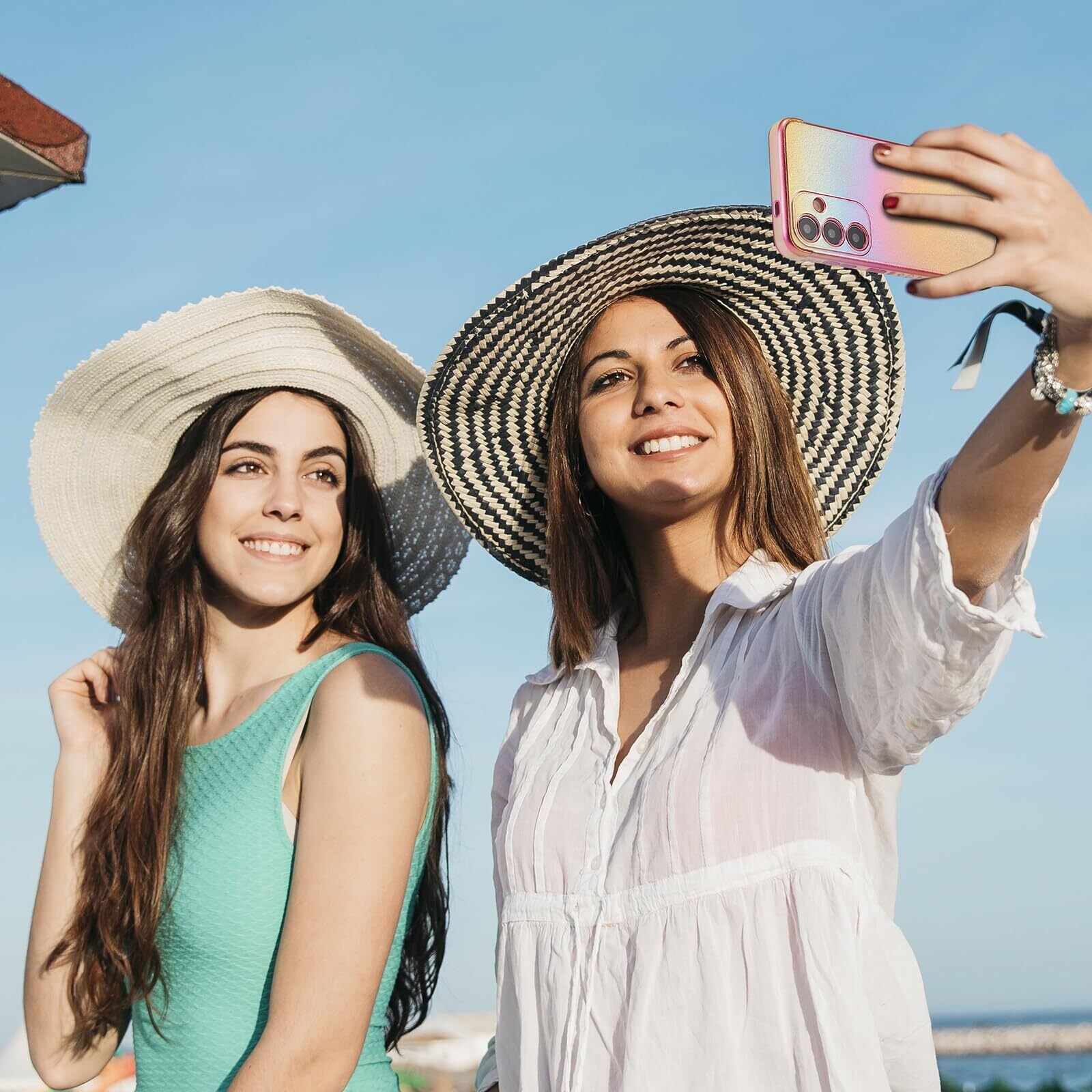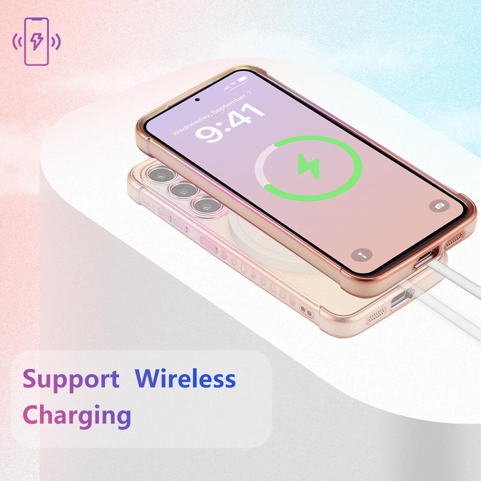 【虹色デザイン】電気メッキ技術により、縁と小さなラブハートパターンを装飾し、メッキされた縁は決して色褪せず、ケース全体が光沢があり、異なる動きや光によって色が変化します; すべてがこのgalaxy s25ケースをよりスタイリッシュにし、目を引く;女の子と女性のための素敵な贈り物。