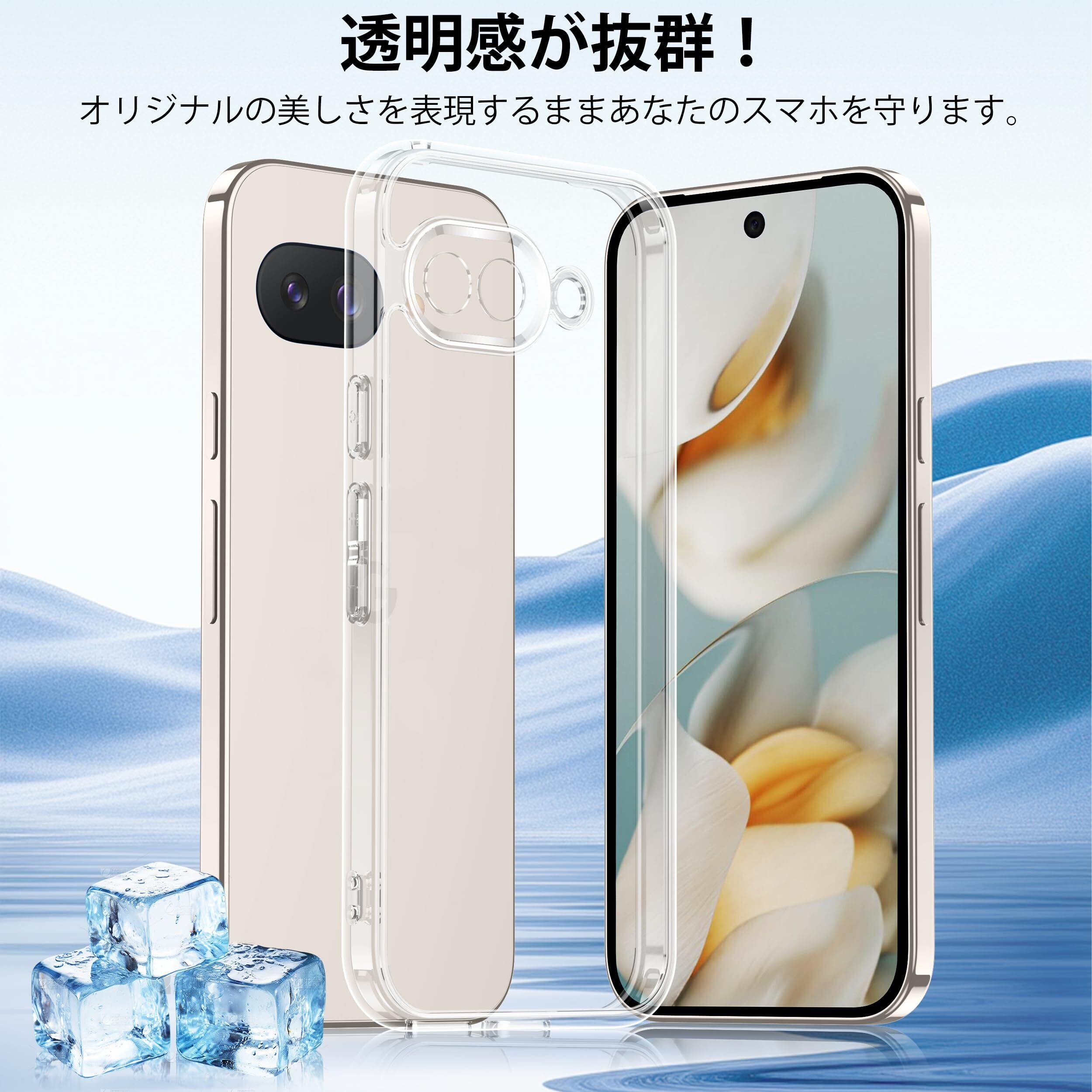 【圧倒的な透明感】高レベルの透明素材を採用し、google pixel 9aの本来のデザインの美しさと色を完璧に表現できるだけでなく、これまでにない澄んだ体験をもたらしています。すべての細部は、フレームから背面にかけて、透き通っていて、清新で美しく、pixel 9aのすべての細部をはっきり見せることができます。