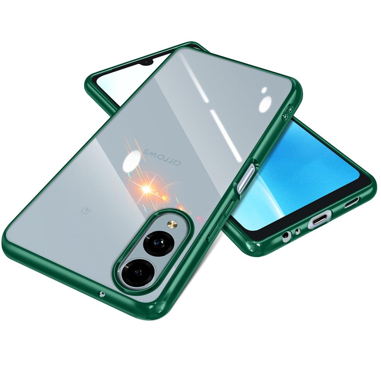 Arrows We2 F-52E 用 ケース クリア 耐衝撃 薄型 軽量 FCG02 A402FC M07 カバー 透明 TPU スマホケース 衝撃吸収 メッキ加工 ソフトケース ストラップホール付き 滑り止め 落下防止 人気 アローズ we2 携帯ケース(ダークグリーン)
