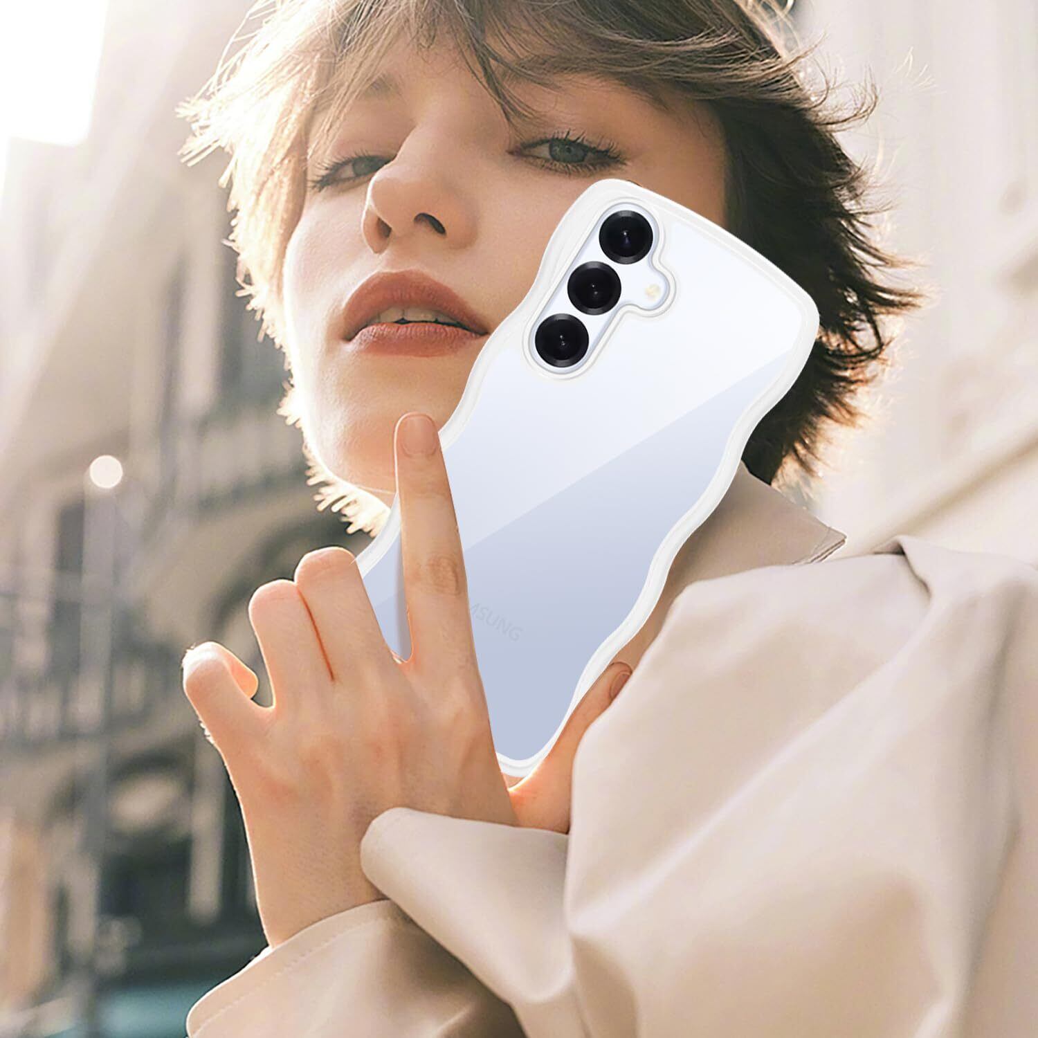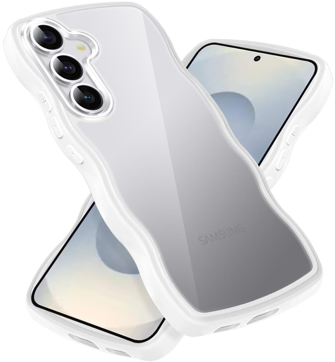 クリア Galaxy S25 SC-51F ケース かわいい 波状フレーム うねうね カバー 耐衝撃 ギャラクシーS25 スマホケース 滑り止め 人気 可愛い 落下防止 ワイヤレス充電対応 (ホワイト)