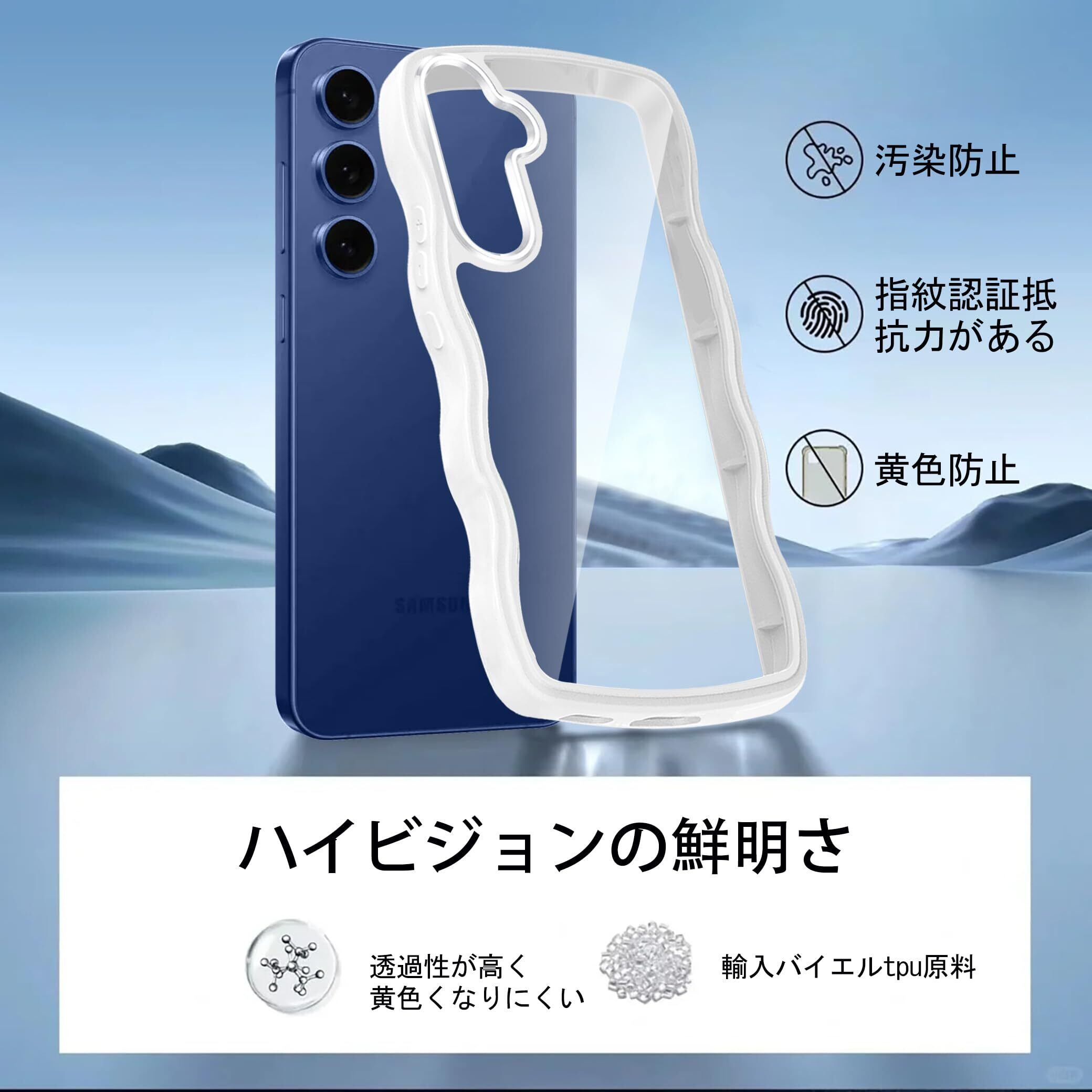 【在庫セール】クリア Galaxy S25 SC-51F ケース かわいい 波状フレーム うねうね カバー 耐衝撃 ギャラクシーS25 スマホケース 滑り止め 人気 可愛い 落下防止 ワイヤレス充電対応 (ホワイト)