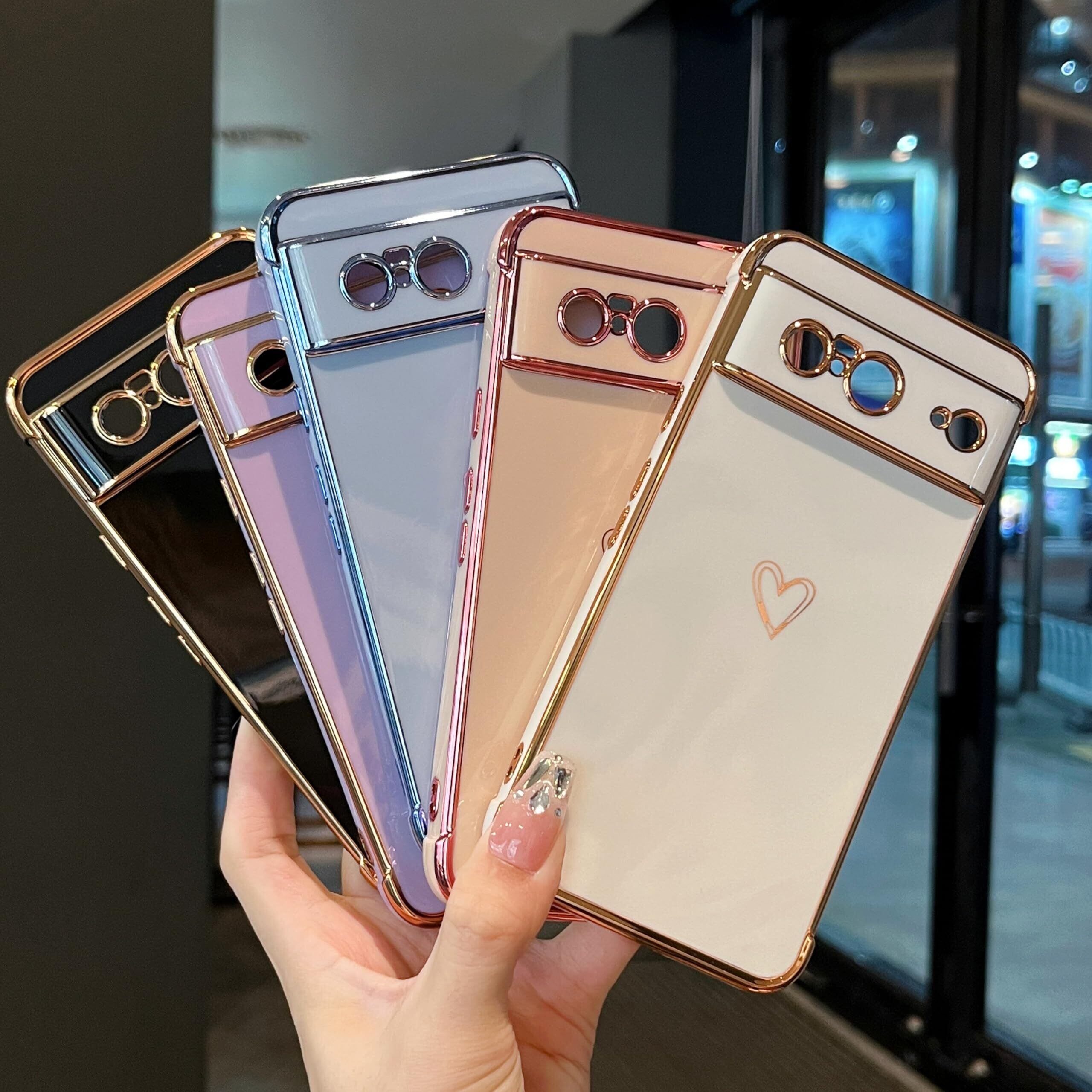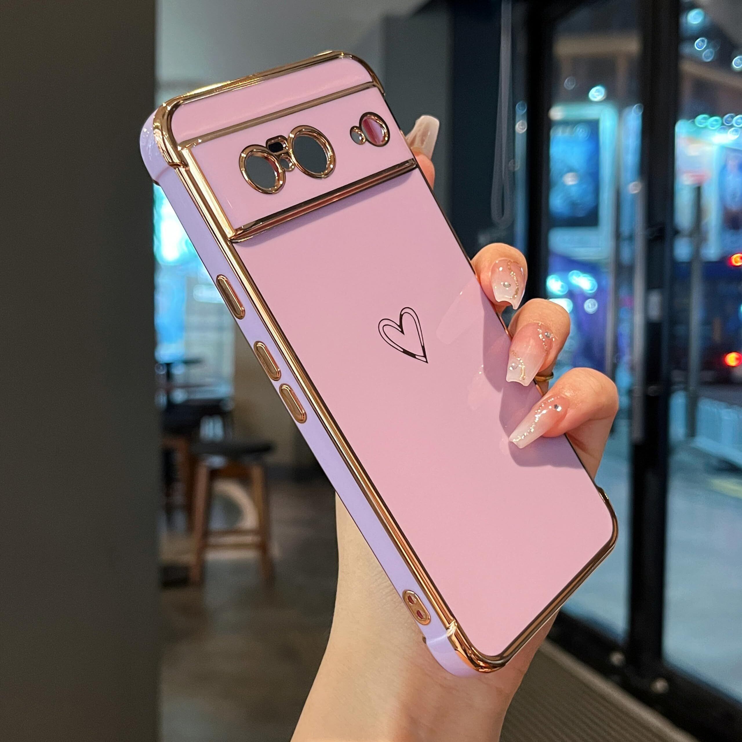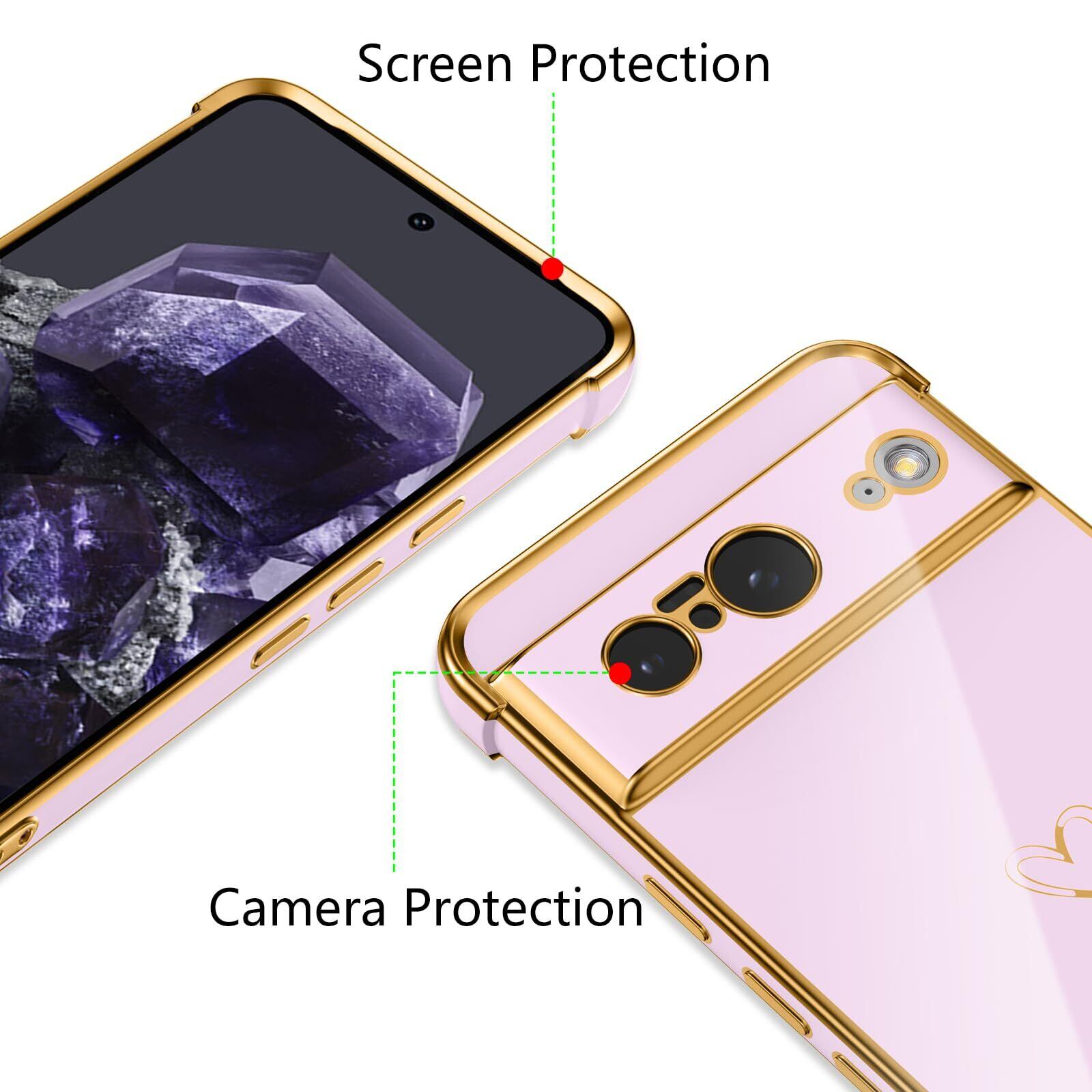 Google Pixel 8 用 ハートケース おしゃれ 韓国 かわいい グーグル ピクセル 8 ケース 柔軟な TPU シリコン メッキ加工 ソフト 軽量 耐衝撃 携帯カバー 女性 心パターン Pixel 8 スマホケース ワイヤレス充電対応 (パープル)