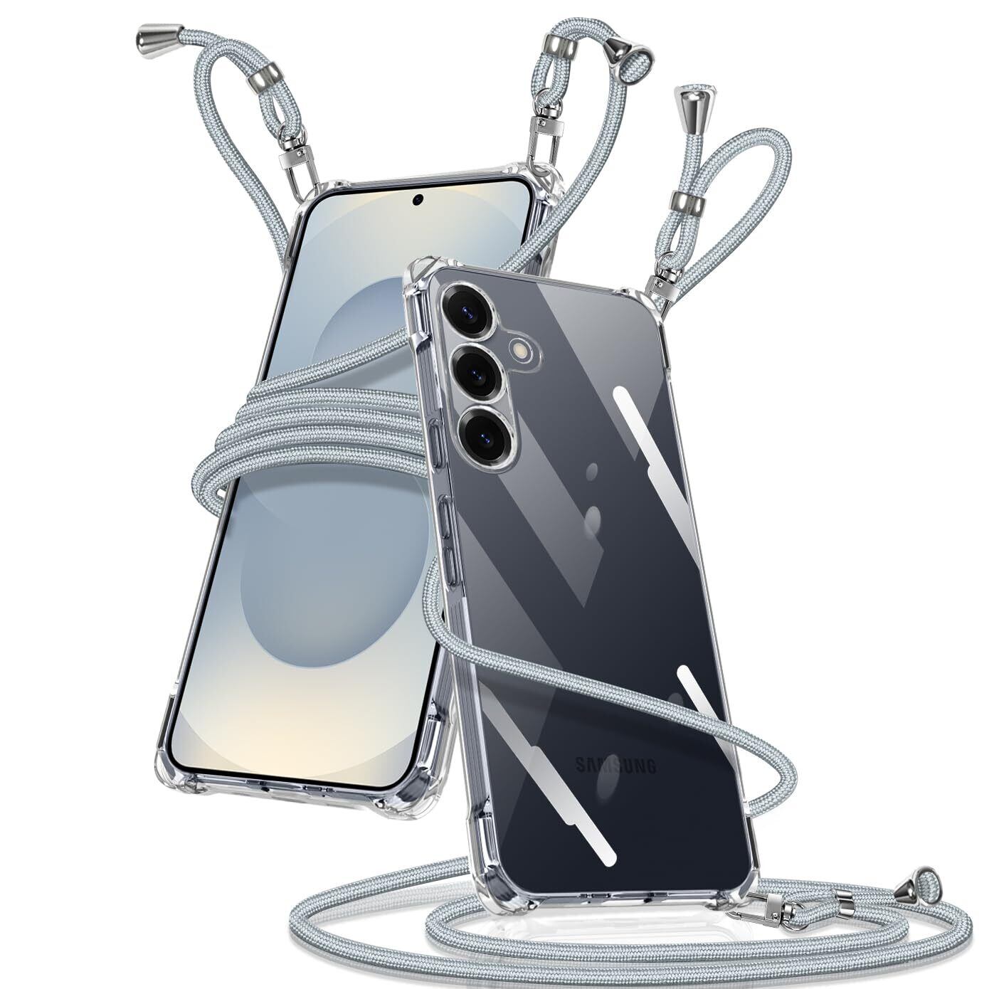 Samsung Galaxy S25 5G ケース クリア ショルダー ギャラクシーS25 スマホケース SC-51F SCG31 カバー 肩掛け 斜めかけ 縄掛けケース 透明 薄型 軽量 TPU 携帯ケース 紐付き 斜めがけ 織りストラップ付き 長さ調整可能 取り外し可能 落下防止 紛失防止(シルバー)