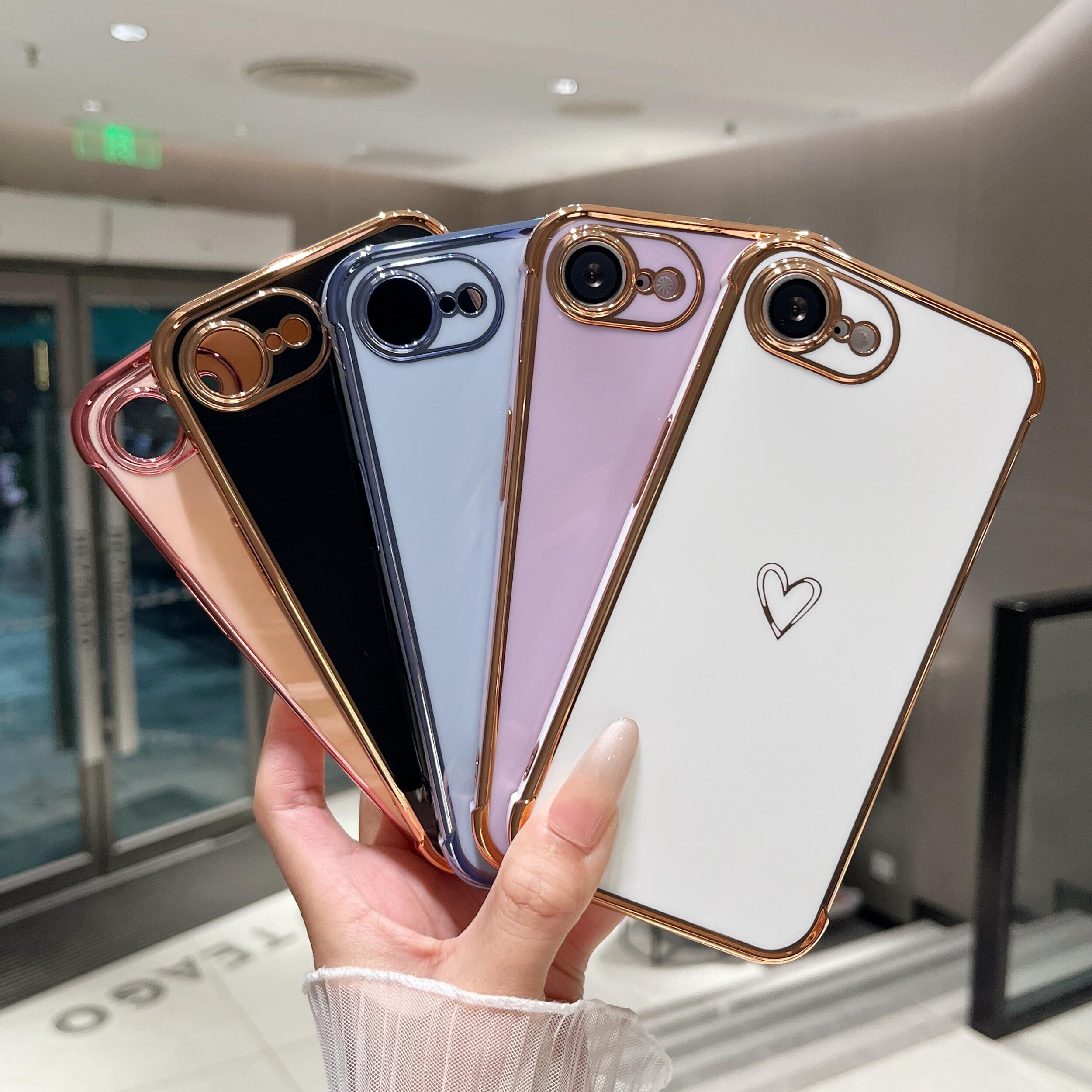 iPhone 16e に対応、購入前に機種をご確認ください。柔らかく柔軟なtpu素材を使用し、エッジとカメラエッジの周りにメッキ技術を使用しています。キュートなラブハートパターンとメッキエッジは、あなたの携帯電話のファッションとスタイリッシュにします。