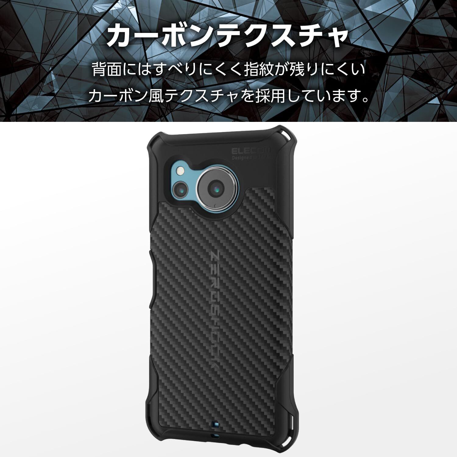 エレコム AQUOS sense8 SH-54D SHG11 ケース カバー 耐衝撃 衝撃吸収 ZEROSHOCK 四つ角ダンパー ハニカム構造 カメラ周り保護 グリップデザイン ブラック PMWS234ZEROGBK