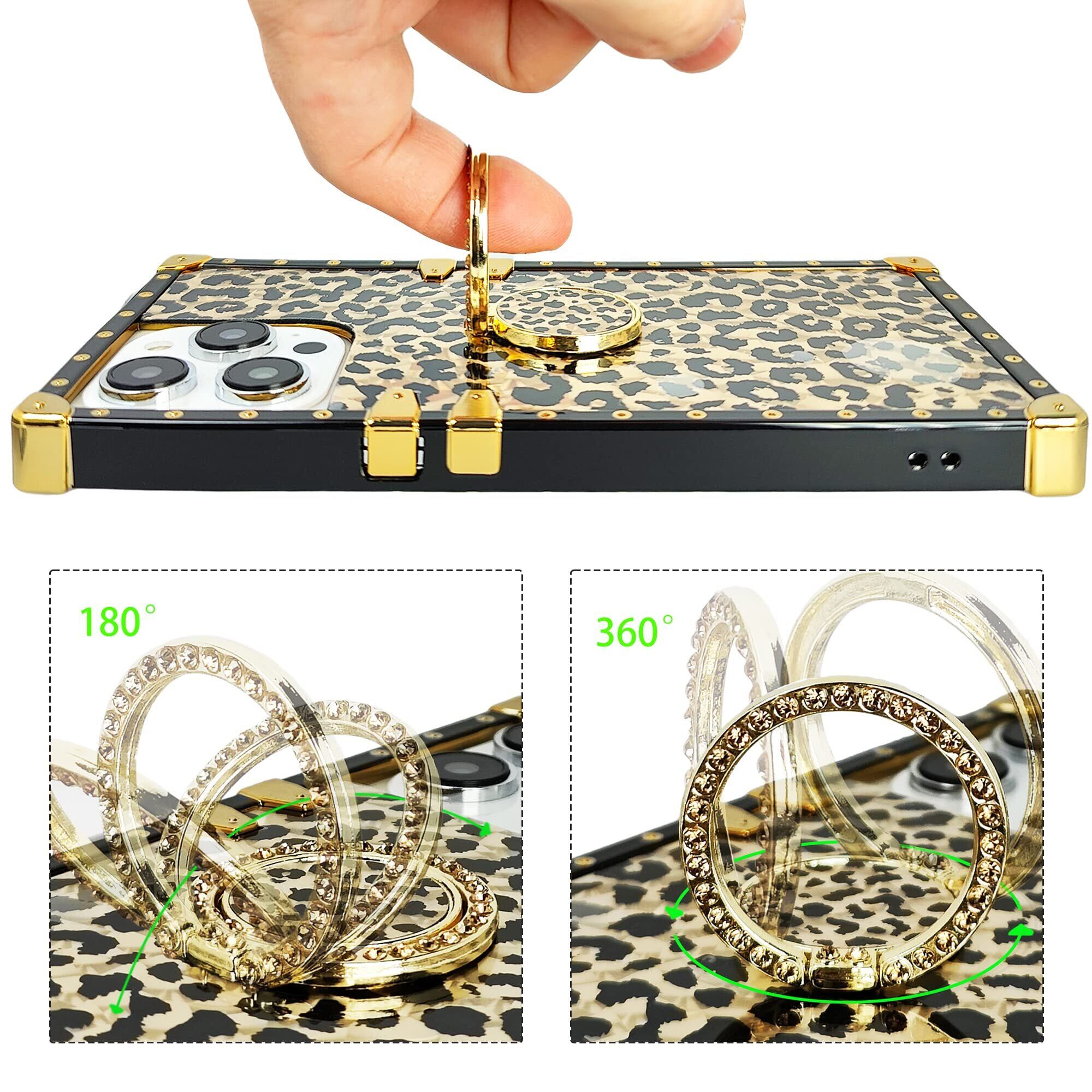 【2022最新】iPhone 13 Pro Maxケース,DMaos指輪ダイヤモンド柔らかい殻,携帯電話ホルダー,iPhone13 Pro Max 6.7吋カバー2021 - ヒョウ