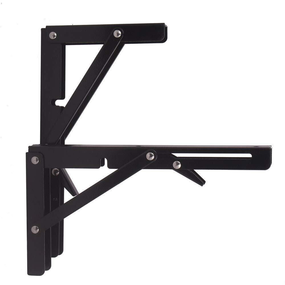 LUCKYBEE 2本セット 棚受け金具 L字型 棚支え ブラケット 折りたたみ アイアン 金具 耐荷重50kg (20cm, ブラック)