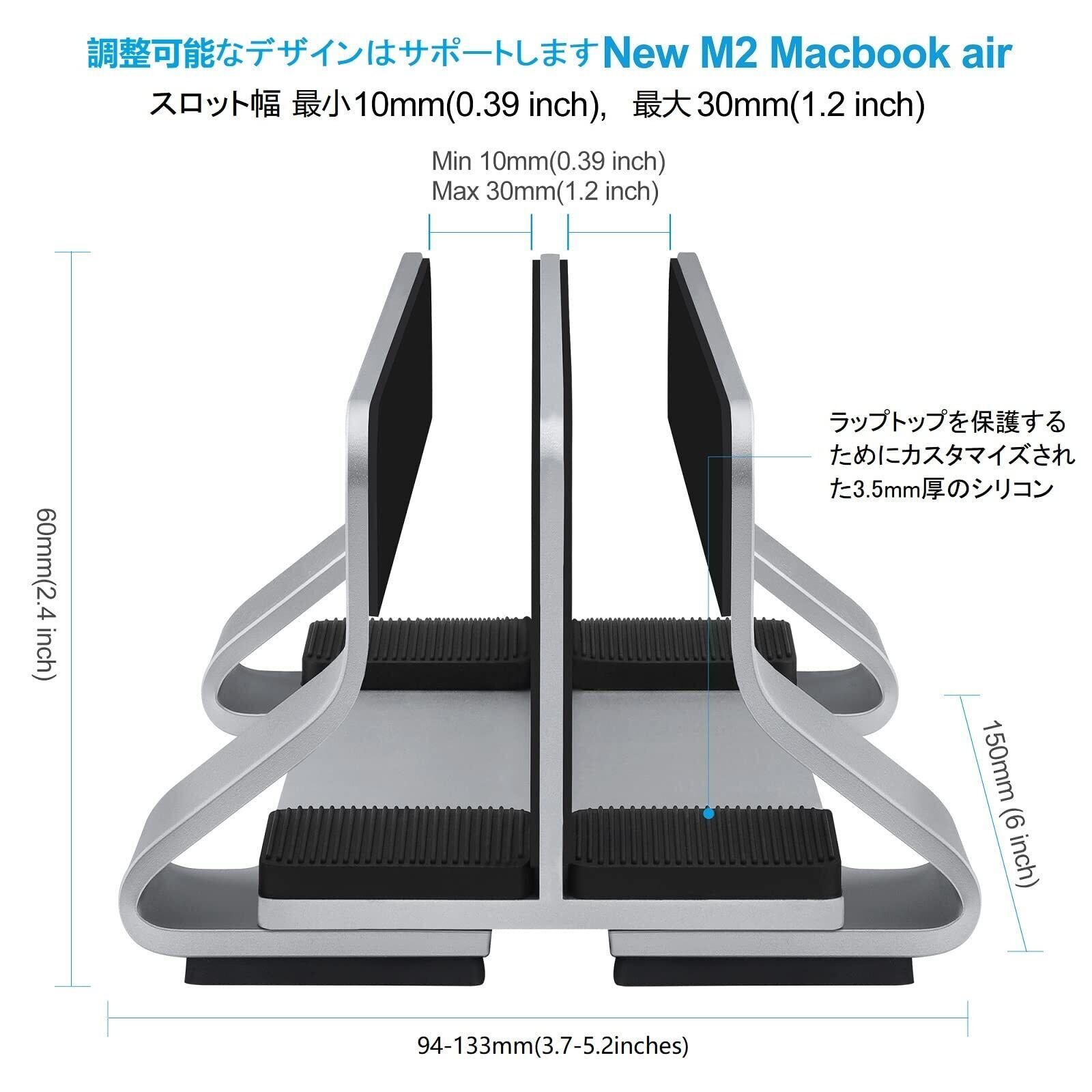 サポート M2 MacBook Air: パソコンスタンド 縦置き 10~30mmの調整可能な幅で、厚さ11.3mmのM2 Macbook airをサポートし、ほとんどすべてのラップトップに適しています。スロットを少し締めると、ラップトップがより垂直になり、安定します。