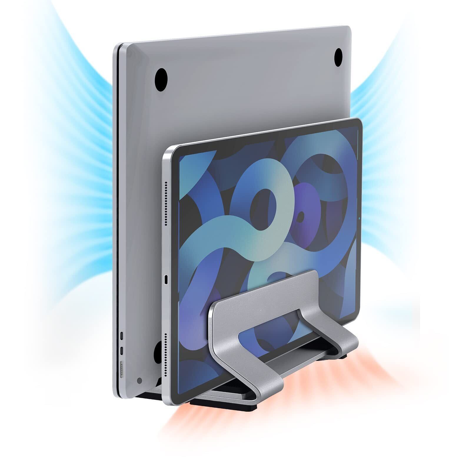 【特価商品】ノートパソコンスタンド 縦置き、工具無しでの調整可能、ですアルミニウム、pcスタンド 縦置き、およびほぼすべてのラップトップをサポート、PSITEKノートパソコン 収納 (スペースグレー, 2スロット) | allstore2