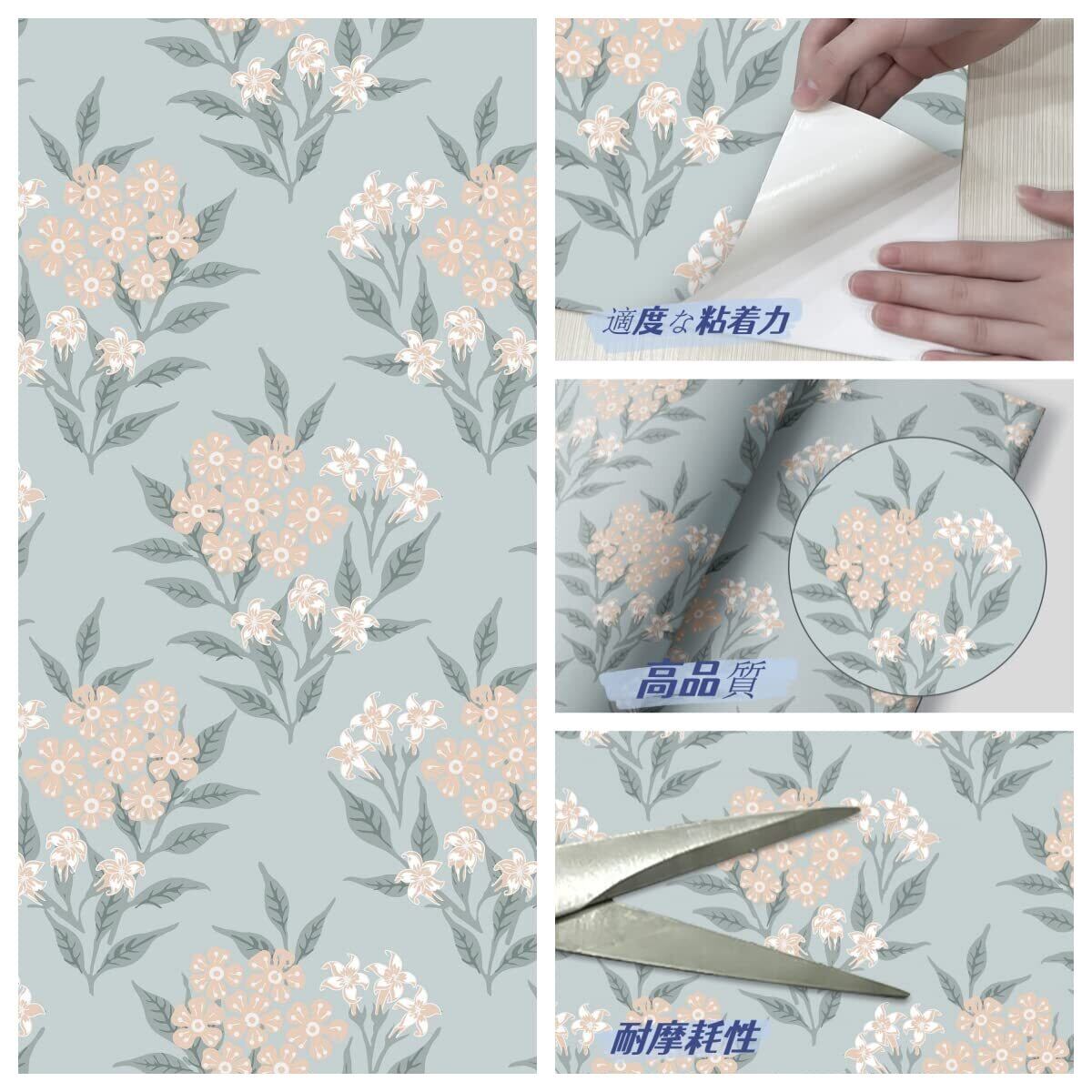 サイズ:約44cm*10m; 厚さ:約0.2mm(台紙を含む); スタイル:花柄・葉柄・鳥柄・草木柄; 素材:PVC。 裏面にマス目入り、線を引く手間が不要、はさみやカッターでご需要のサイズに裁断でき、台紙から剥がしてそのまま貼り付けます。初心者でも簡単にDIYできます。 生産ロットにより、色合いや模様が若干変わる場合がございます。予めご了承ください。
