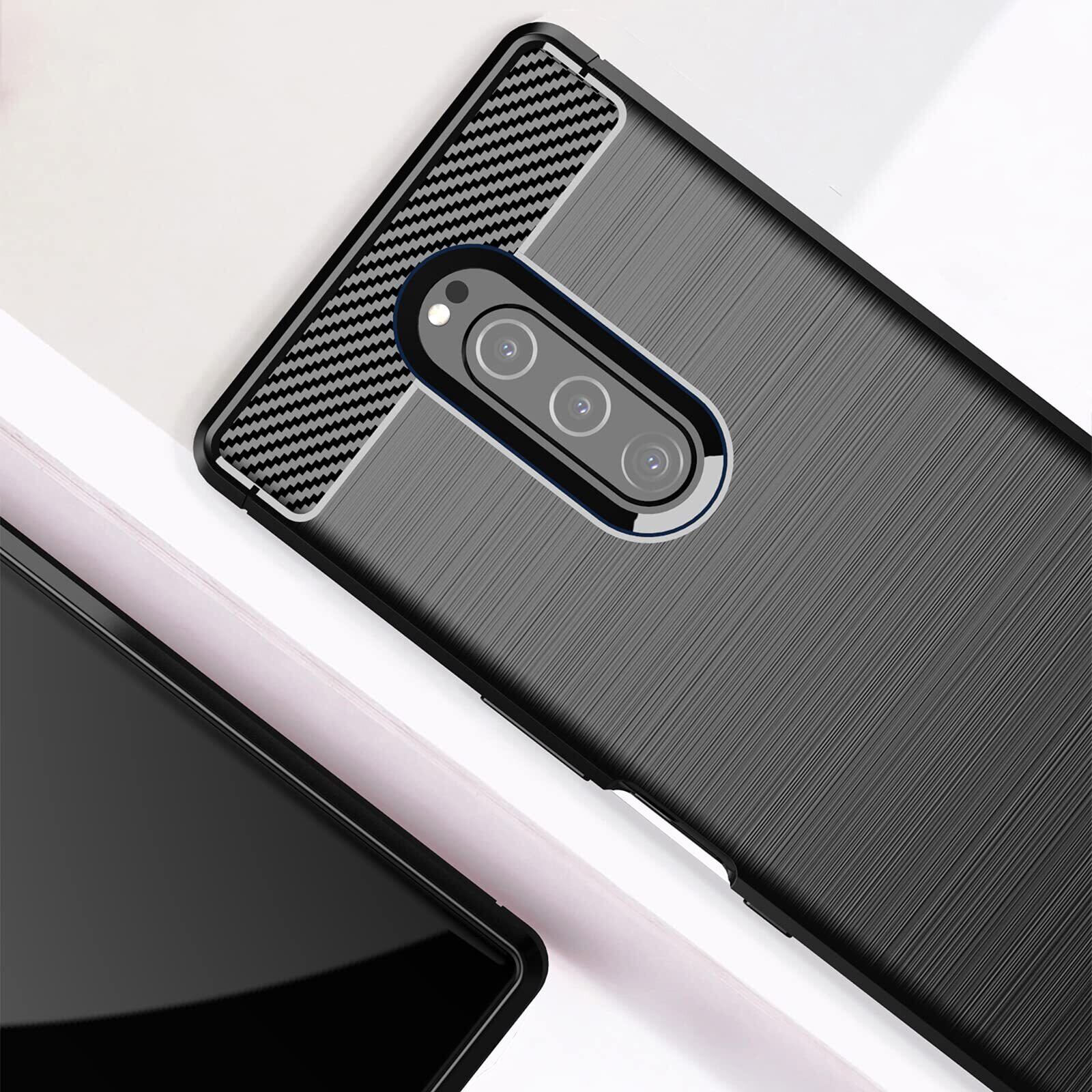 【UNEED】Sony Xperia 1 用の スマホケース SO-03L/SOV40用の ケース カバー ケース 炭素繊維カバー (素材/TPU) 指紋防止 滑り止め 薄型 軽量 耐衝撃 簡易脱着 ソフトケース カラー:黒