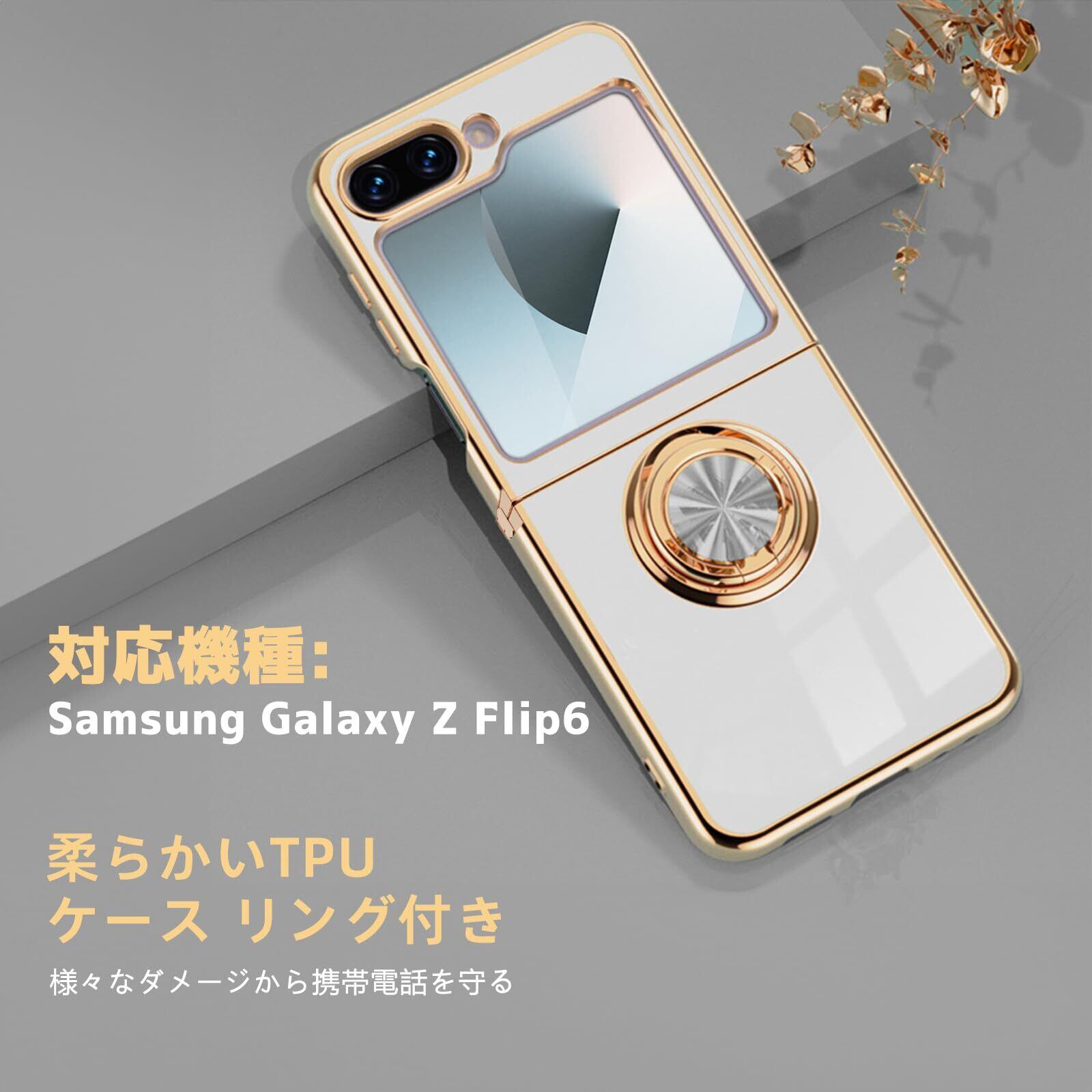 Samsung Galaxy Z Flip6 SC-54E 用 ケース リング付き カバー TPU素材 スタンド機 ギャラクシー Flip6 5G 用 スマホケース 軽量 耐衝撃 薄い 擦り傷防止 落下防止 車載ホルダー 360°回転 ケース Samsung Galaxy Flip6 5G 対応 (ホワイト)