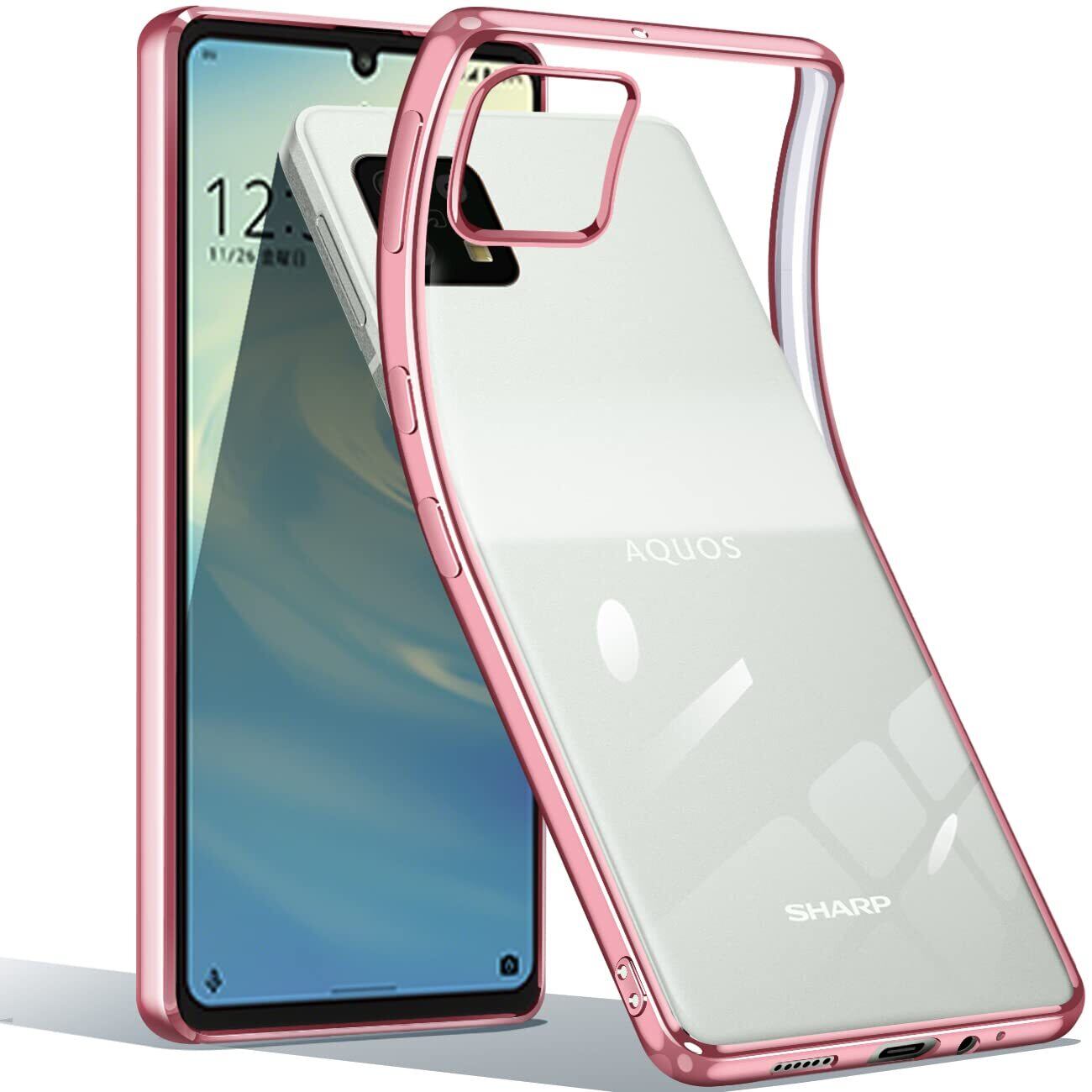 【特価商品】AQUOS sense6 / Sense 6s ケース クリア SHG07 SH-54B SHG05 透明 TPU 薄型 軽量 耐衝撃 メッキ加工 ソフトケース 人気 保護カバー(ローズゴールド)