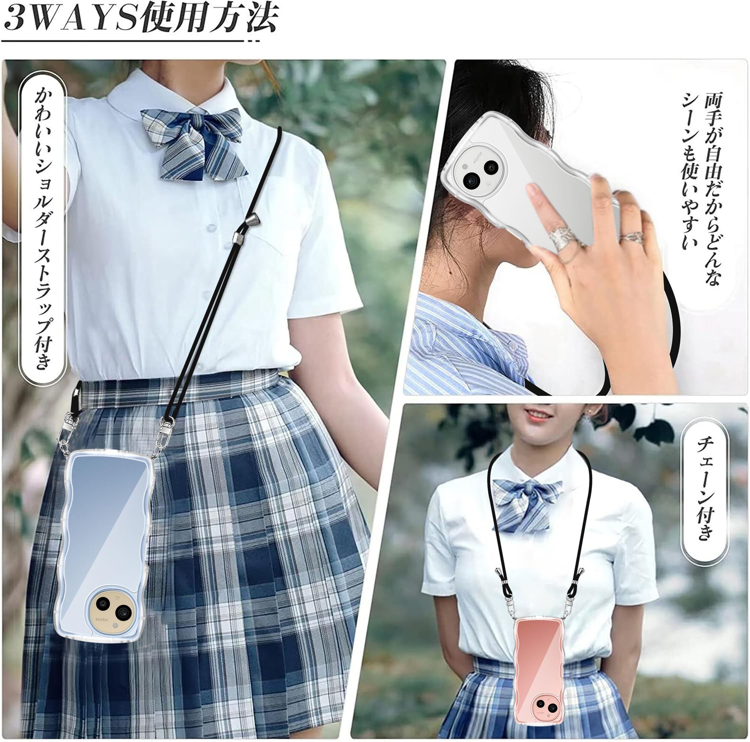 AQUOS sense9 ケース クリア ショルダー ストラップ付き AQUOS sense9 SH-53E/SHG14 カバー 人気 全面保護 透明 スマホケース 首かけ 肩掛け TPU 薄型 軽量 取り外し可能 長さ調整可能 ワイヤレス充電対応(透明)