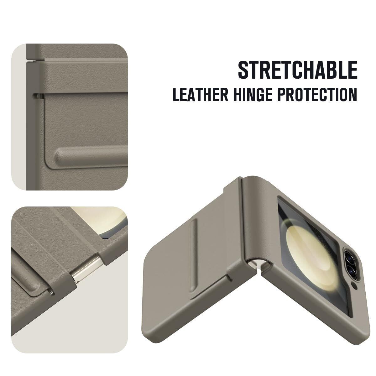 ケース Galaxy Z Flip5 完全な保護 レザー 強化ガラス膜 ワイヤレス充電サポート 手帳型 レンズ ヒンジ保護 つや消しの表面 指紋防止 人気 カバー 薄型 超軽量 180度折り畳 スタンド機能 衝撃吸収 おしゃれ かわいい 面白い 耐汚れ 滑り防止 beautycatcher - グレー