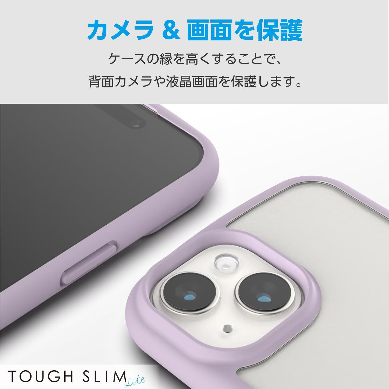 エレコム iPhone15 ケース TOUGH SLIM LITE 耐衝撃 衝撃吸収 薄型 軽量 ストラップシート付き ストラップホール付き [全周配置のエアークッションが衝撃を吸収] ラベンダー PM-A23ATSLFCPU