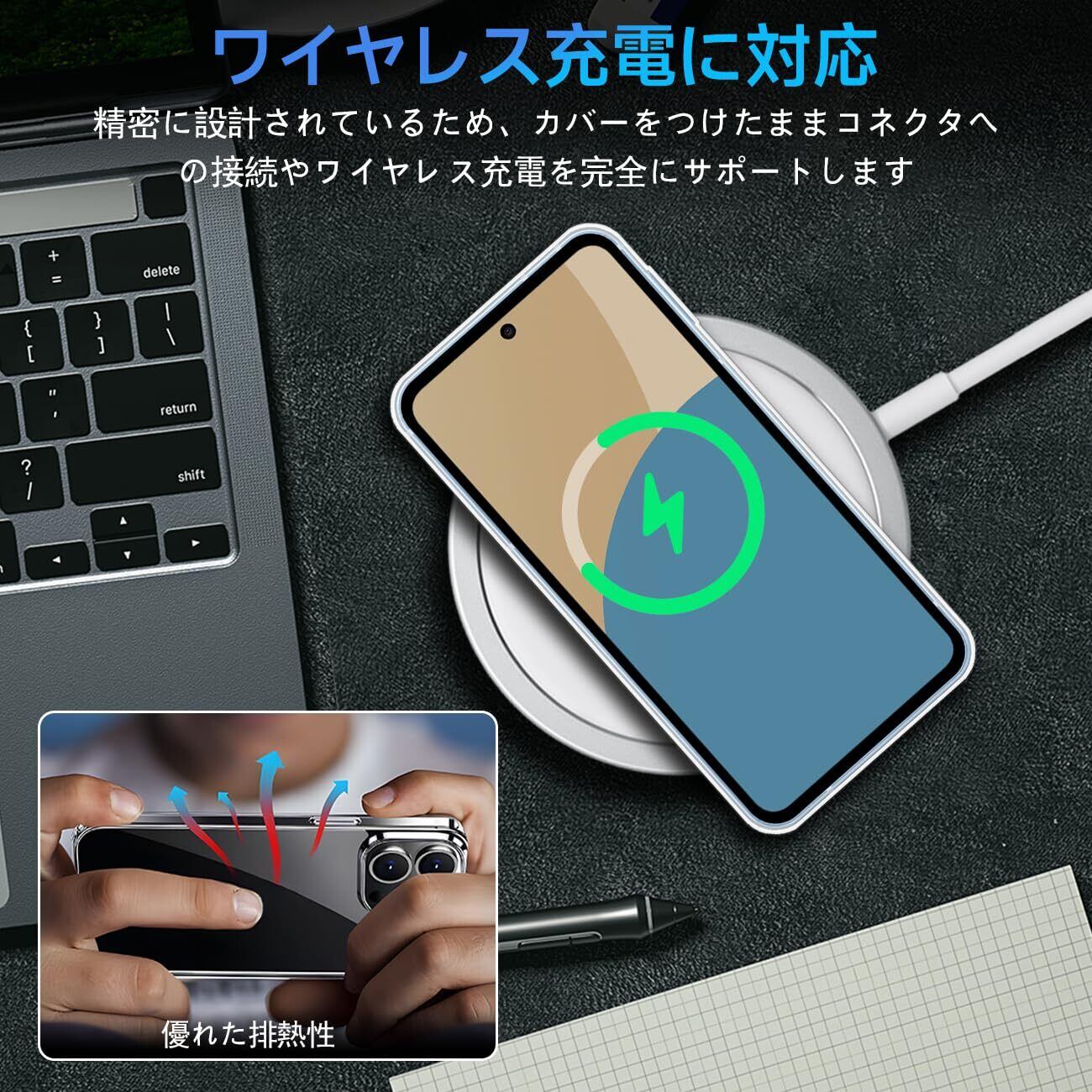 【細かいところまで保護できる安心設計・レンズと液晶画面にも保護】携帯電話を平らな面に置いたとき、液晶画面とカメラレンズの接触による不具合を最小限に抑えるため、カメラレンズより0.5mmをアップし、液晶画面より0.8mmアップしております。スクリーンを保護する同時に、ガラスフィルムをまったく邪魔しません。更に滑り止めと落下防止の設計があり、テーブルから滑り落ちる心配はありません。裏面は放熱性に優れたポリカーボネート素材を採用し、効率的に放熱し、バッテリーを完璧に保護することができます。携帯電話ケースを付けたままでもワイヤレス充電が可能です。
