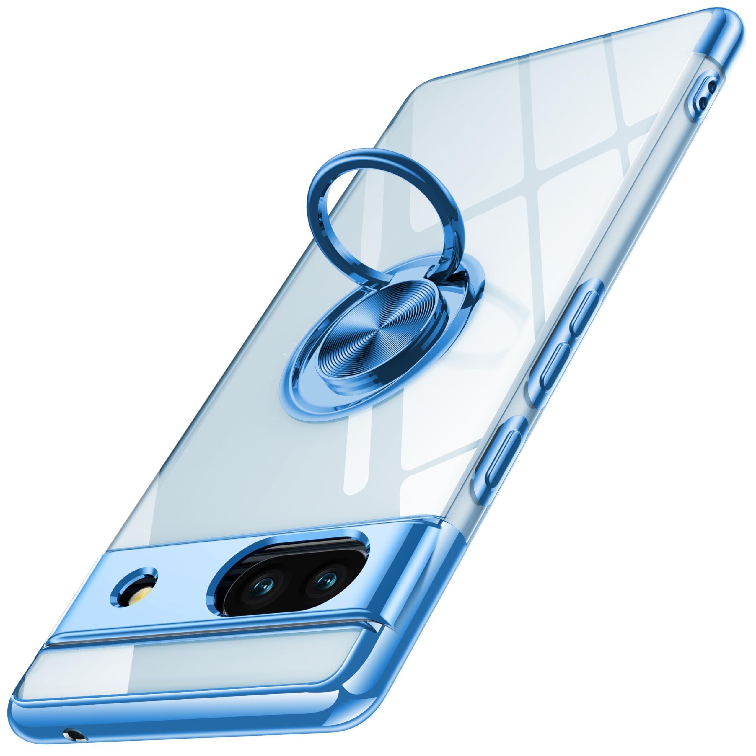 Google Pixel 8a 用 ケース クリア リング付き ピクセル 8a カバー 透明 おしゃれ OURJOY スマホケース メッキ加工 ソフトケース 耐衝撃 軽量 薄型 ストラップホール付き スタンド機能 車載ホルダー対応 携帯ケース・ブルー