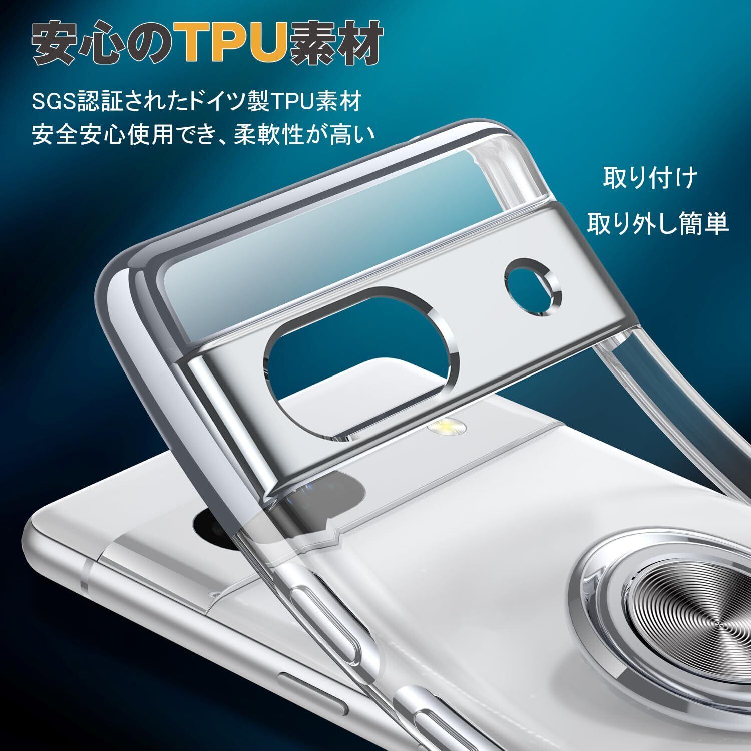 【新着商品】Google Pixel 8a 用 ケース クリア リング付き ピクセル 8a カバー 透明 おしゃれ OURJOY スマホケース メッキ加工 ソフトケース 耐衝撃 軽量 薄型 ストラップホール付き スタンド機能 車載ホルダー対応 携帯ケース・ブルー