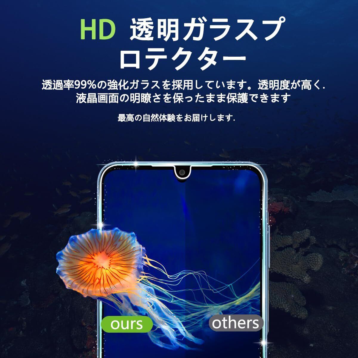【高透過率】 高品質の日本製旭硝子素材を採用することで透過性がに達しています。市販のガラスフィルムより透明度が高くて、液晶画面の本来の美しさを損なわないません。高精細度でいつでも写真やビデオを楽しむことができます。