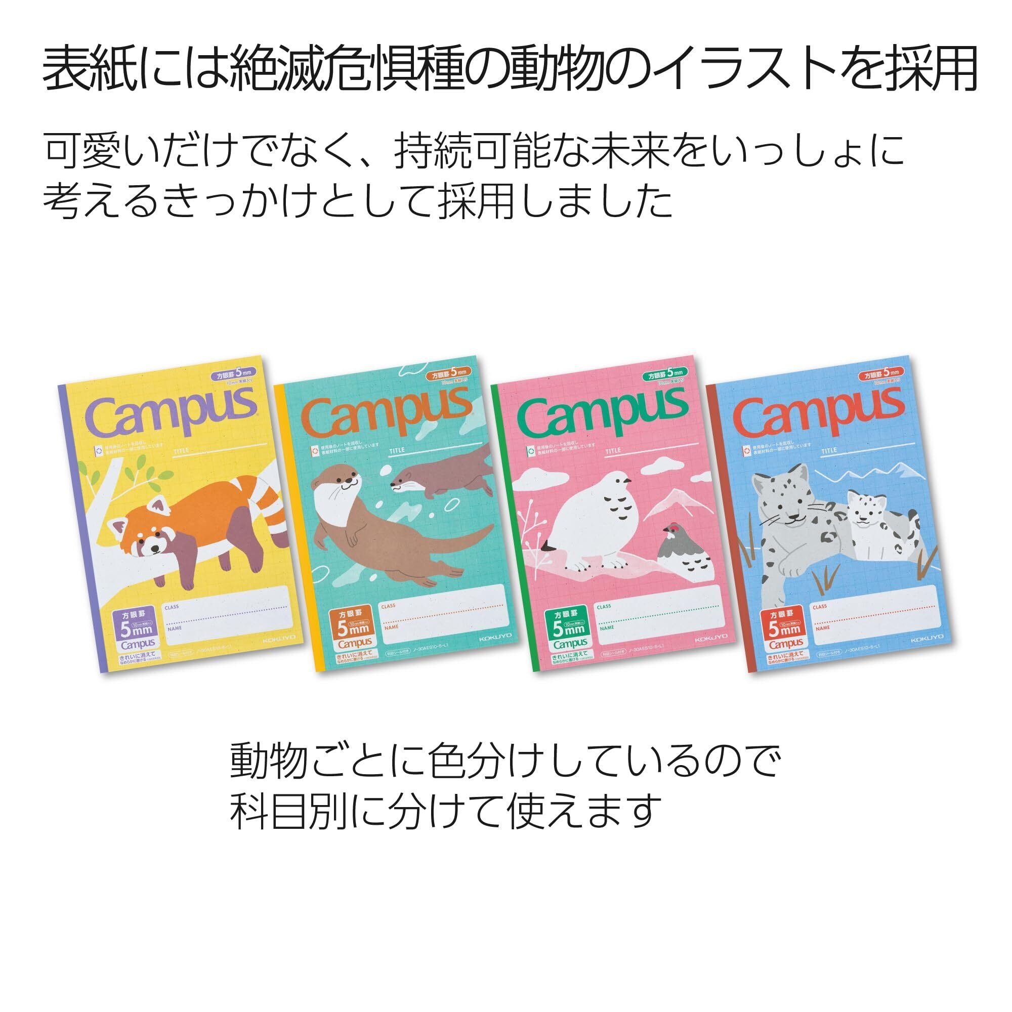 コクヨ キャンパス ノート つなげるーぱ 用途別 セミB5 5mm方眼罫 絶滅危惧種 アニマル柄 4冊パック ノ-30AES10-5-L1X4