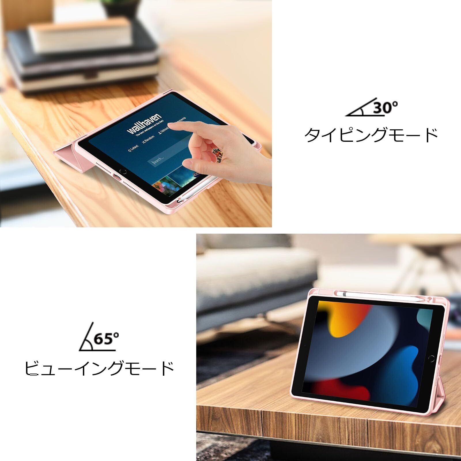 【人気商品】ProCase iPad 9世代 ケース 8世代/7世代通用(2021 2020 2019) iPad 10.2" 対応 ペン収納 耐衝撃 三つ折り スタンド スマートカバー(ピンク)