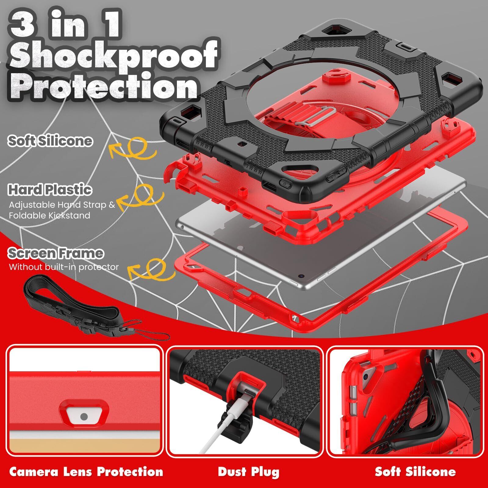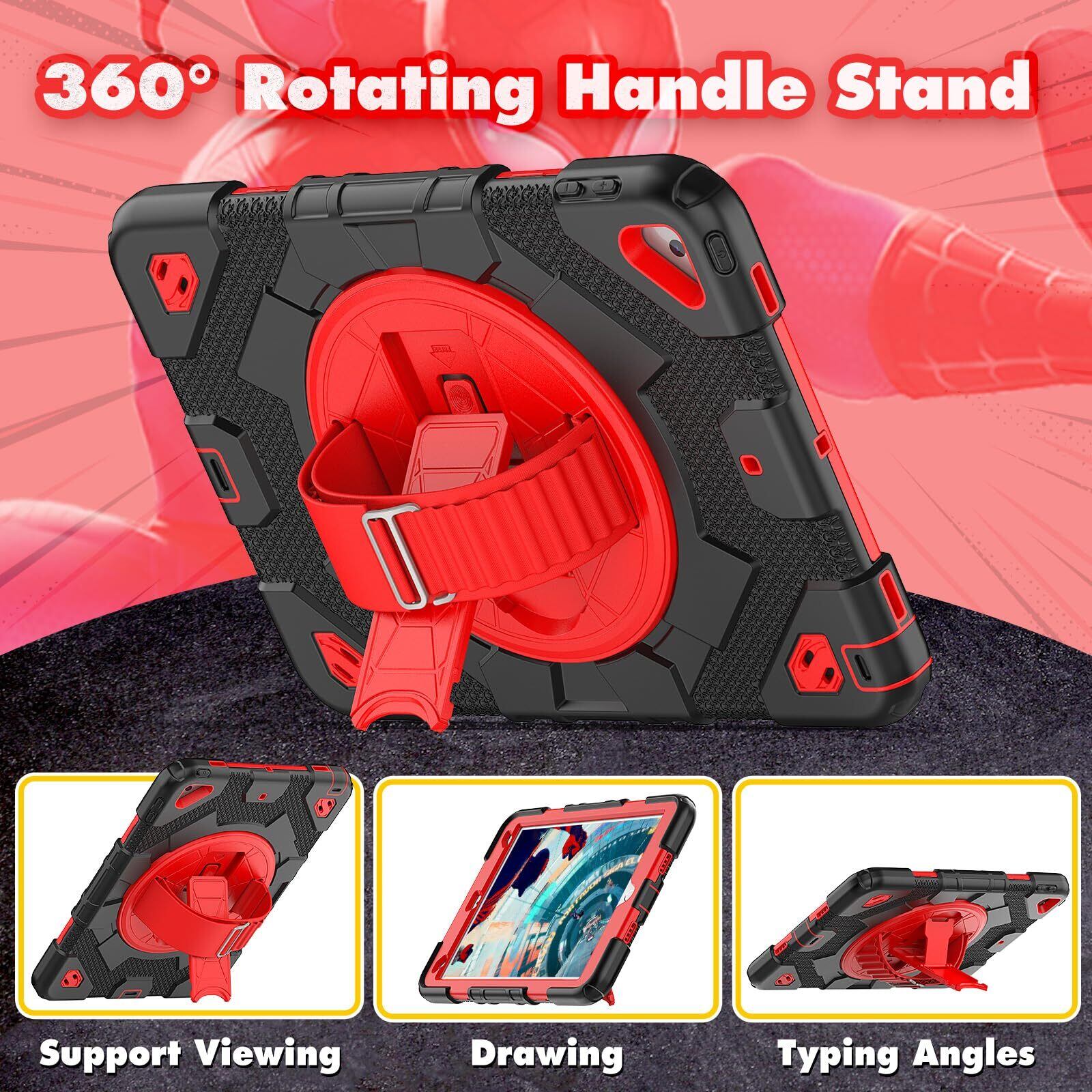 Timecity iPad 第11/10世代 ケース (2025、A16) 耐衝撃 iPad 11世代/ 10世代 ケース 2025/2022モデル 360回転スタンド 保護フィルム ペン収納 ハンド&ショルダーストラップ付き 工事 現場 仕事 頑丈 耐久 三層保護 アイパット 第11/10世代 カバー (ブラック+レッド)