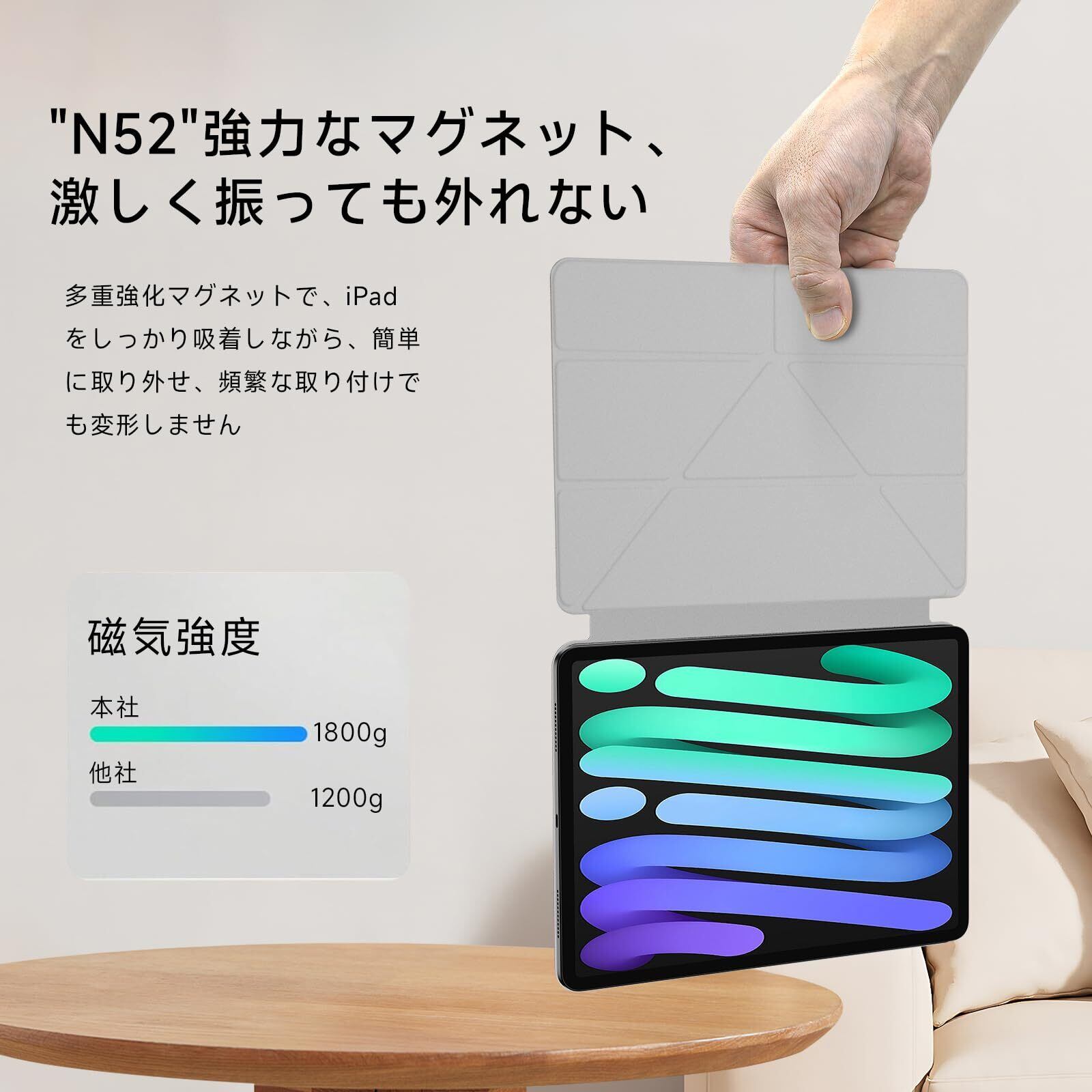 iPad mini7 ケース(A17 Pro、2024) iPad mini 第7/6世代 ケース (2024/2021) 8.3インチ ケース 強力マグネット吸着 横置&縦置 角度調整可能 三角形スタンド 安定感 Pencil Pro/USB-C対応 超スリム 極薄 軽量 耐久性保護カバー (ライトグレー)
