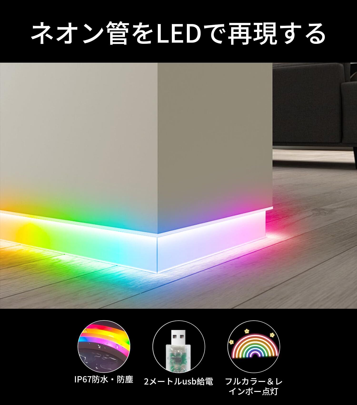 ledテープライト usb 5v 流れる RGB IP67防水 led ネオンチューブ リモコン付き テープ照明 取付簡単 間接照明 店の飾り テープライト 2m 虹色