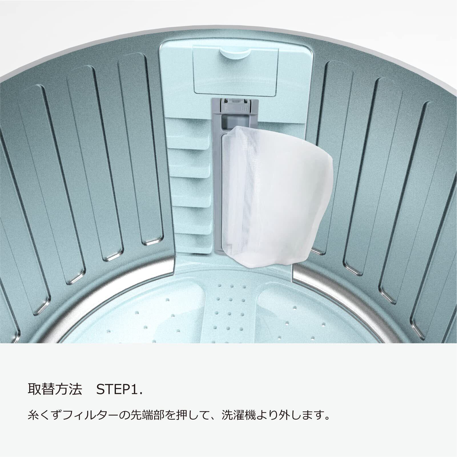 『お手入れと交換』適当な頻度で糸くずフィルターのお手入れをしましょう;または糸くずフィルターは消耗品ですので、洗っても汚れが落ちない時や壊れる場合に新品に交換してください。