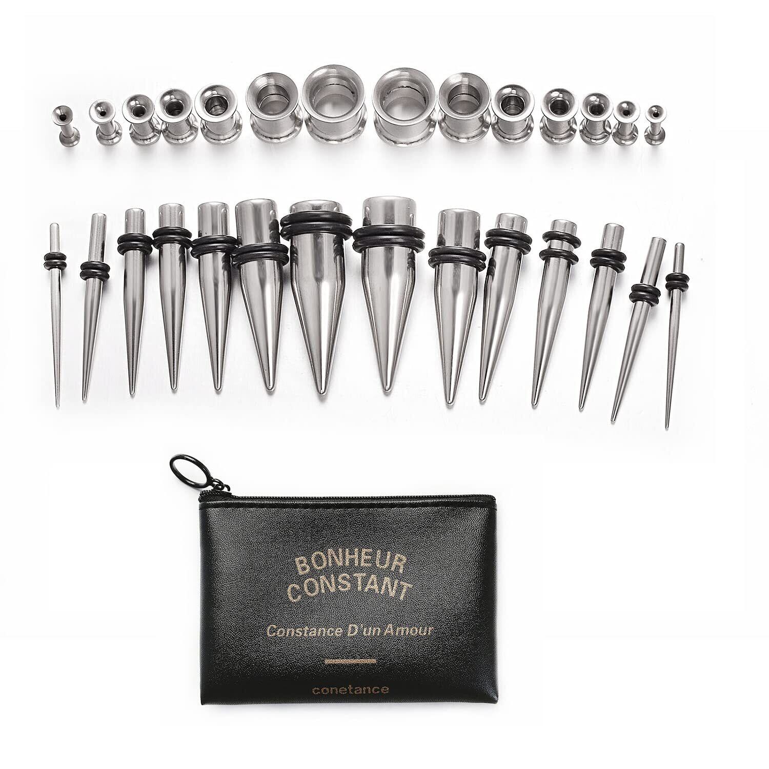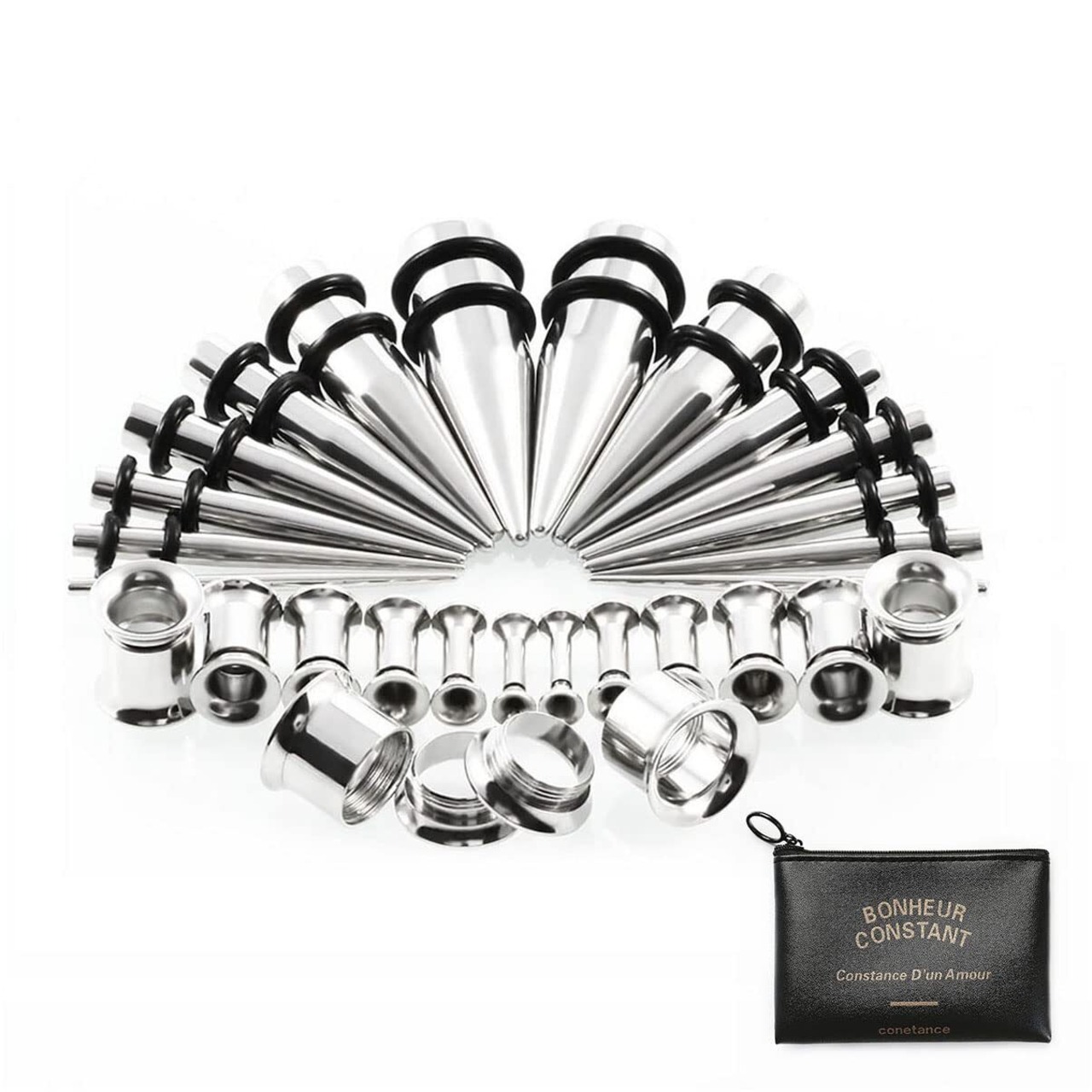 拡張器 ピアス セット 28点 ステンレス ボディピアス 12G-00G ダブルフレア トンネル キャッチ ネジ式 ゴムキャッチ メンズ レディース 拡張ピアス 金属アレルギー対応 男女兼用(シルバー)