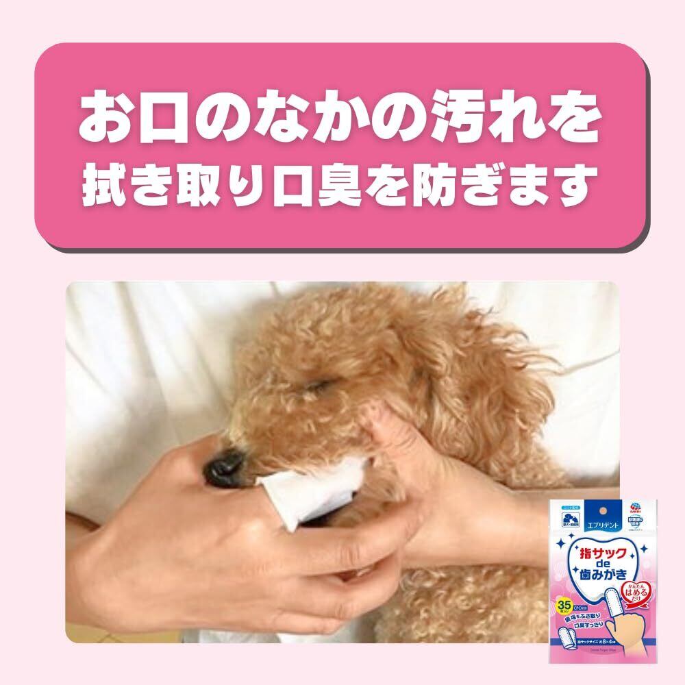 指サック型だから、袋から取り出して簡単にはめるだけで使用出来るウエットタイプの歯みがきシートです。 お口の中の汚れをふき取り、口臭を防ぎます。 ペットの好きなミルク風味。 毎日使える大容量。(1日1回使用で約1ヶ月分)
