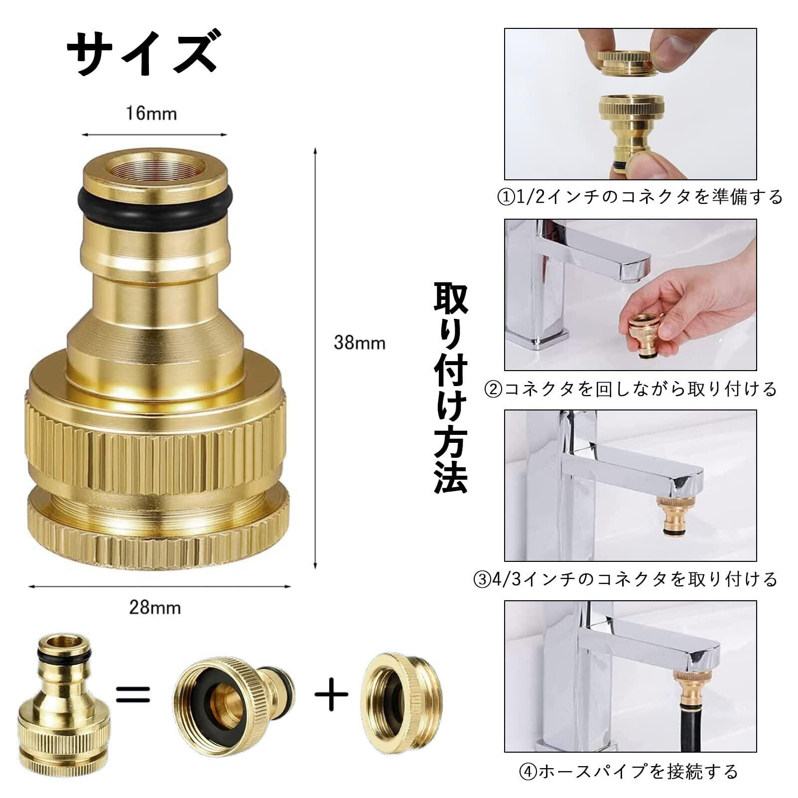 【上質な材質】:真鍮製で見た目もよく、直射日光や凍結にも強い作りになっています、は耐腐食性と防錆性があ。プラスチック製のホース継手に比べて寿命が長くなります。屋外での長期使用に適しています。※暖かいヒント:うまく接続できない場合は、タップにシーラントテープを巻いてから、もう一度接続してください。