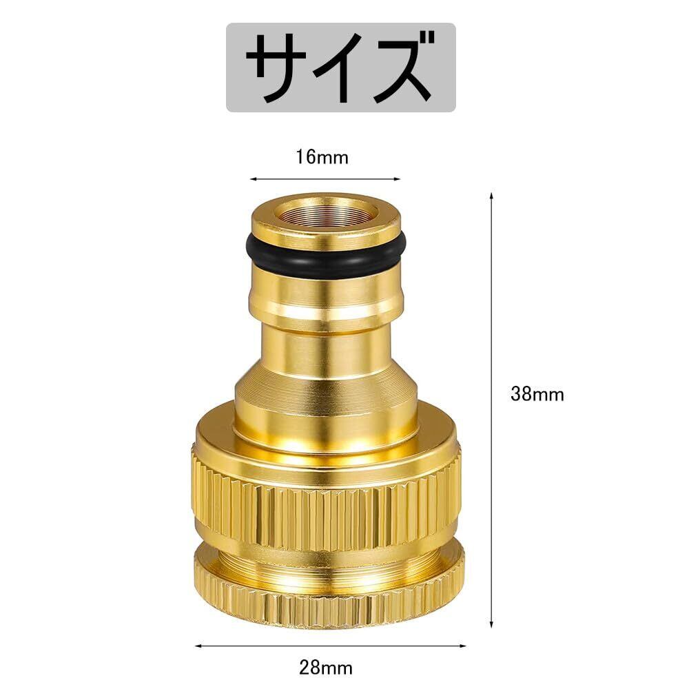 【商品仕様】セット内容:蛇口コネクタ×2個セット、本体サイズ:高さ38mm ホース接続部16mm、蛇口接続部内径サイズ:1/2”(20mm) 3/4”(25mm) 。