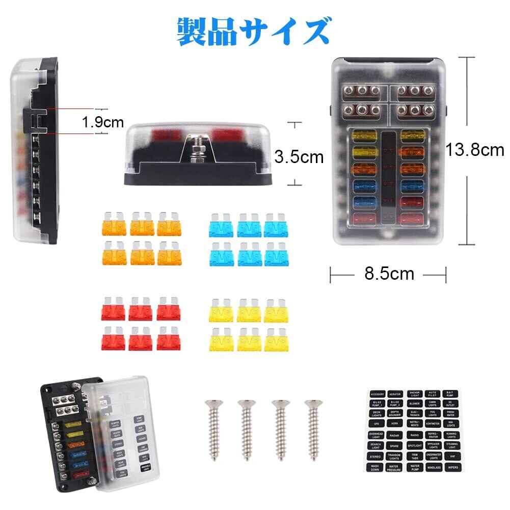 【在庫処分】ADPOWヒューズボックス 12ウェイ ホルダー 防水防塵 LED警告ライト 回路保護ブロック ビューズキット&ステッカー付き ATO ATC ブレードヒューズ 自動車 ボート マリン トライク用 12V-32V | allstore2