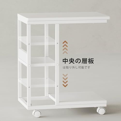 【2022最新】サイドテーブル キャスター付き ソファーテーブル コの字型ベッドサイドテーブル ソファテーブル 可移動ナイトテーブル 層板は調節可能 幅48×奥行30×高さ60cm(キャスター約5CM) 白い | allstore2