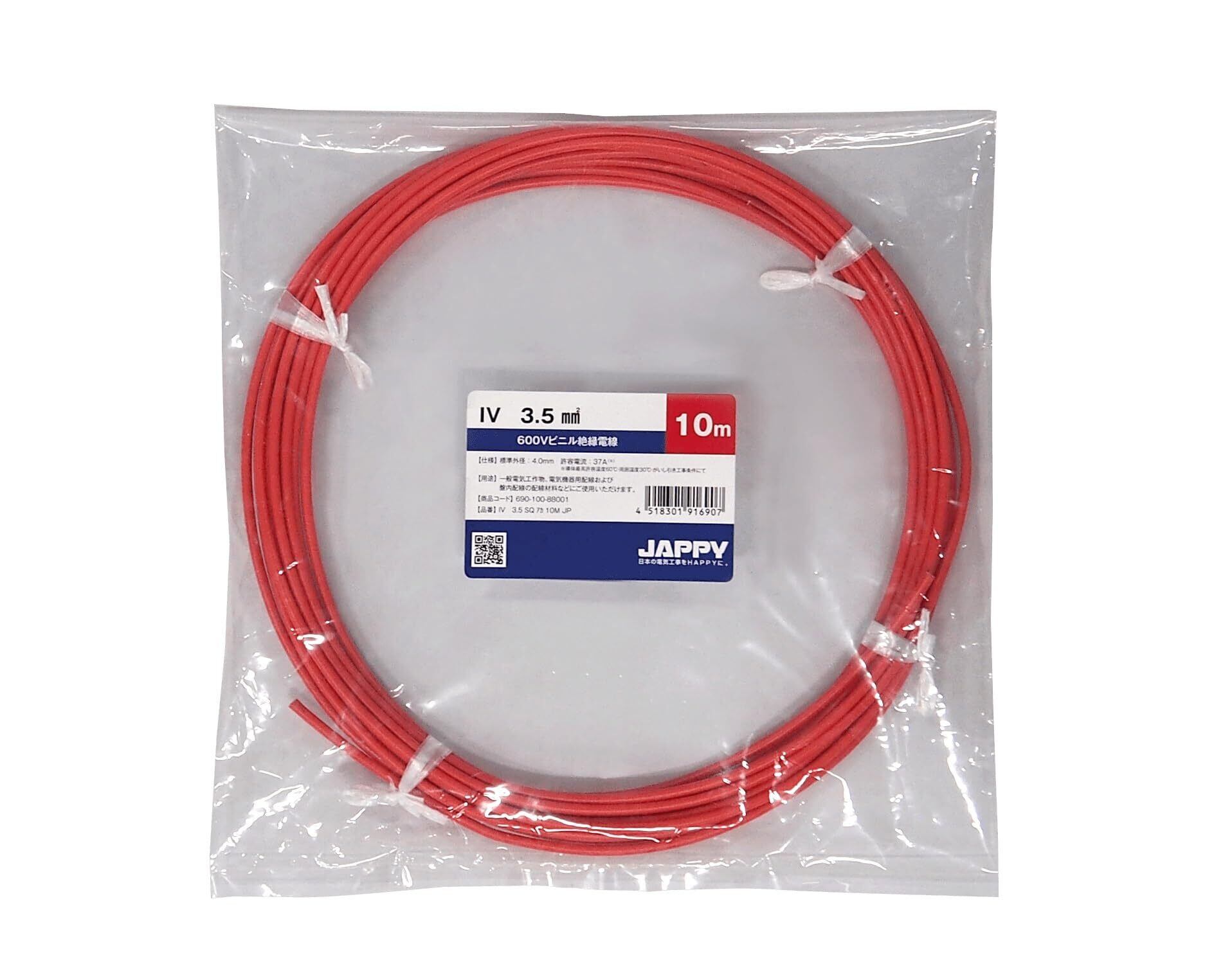 フジクラダイヤケーブル ビニル絶縁電線 IV 3.5 SQ 赤 20M 巻き