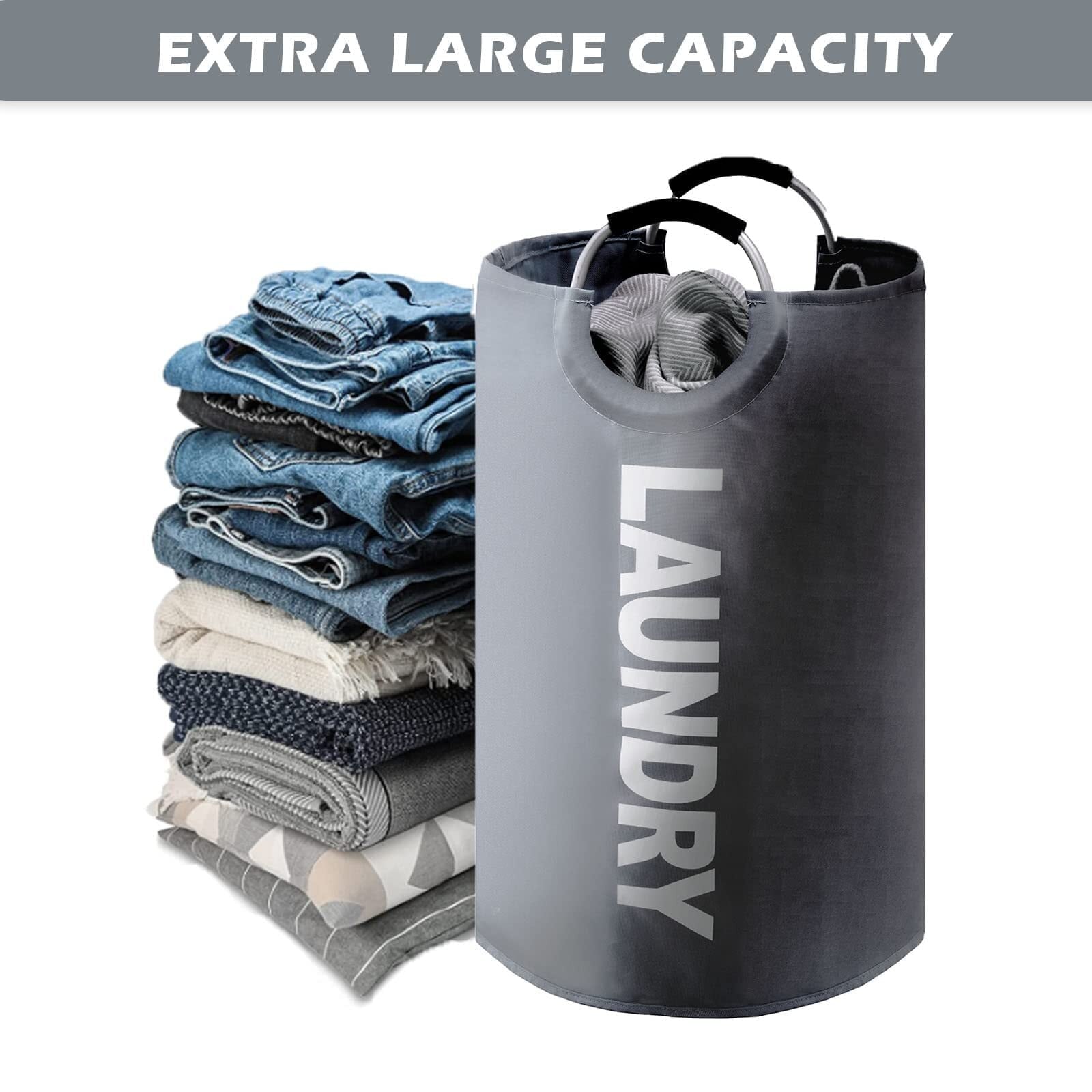 【特価セール】ランドリーバスケット 大容量82L せんたくかご 85%防水性 折りたたみ 撥水加工 耐荷重15KG 洗濯物入れ 取っ手付き ランドリーバッグ 衣類収納 寝室 脱衣所 リビング クローゼット内 幅38×高さ72(cm) (グレー、82L) | allstore2