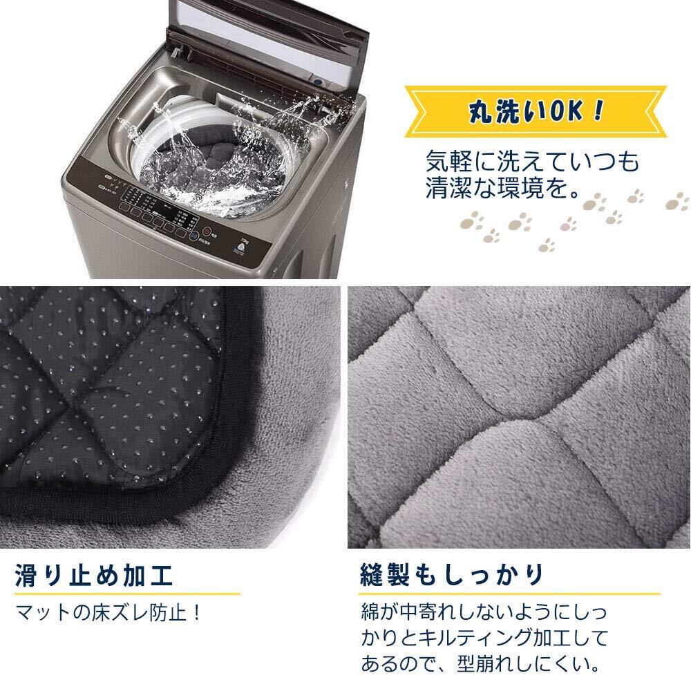 【滑り止め加工】裏面のノンスキッドボトムは、滑り止め機能があり置いた場所にそのまま滑ることなく置くことができます。【洗えるペットマット】手洗いOK、洗濯機洗いも可能です。いつでも清潔に保てることで、マットも快適に過ごすことができます。また、清潔を保つことで細菌やダニの増殖を抑えて、マットは皮膚疾患を予防できます。