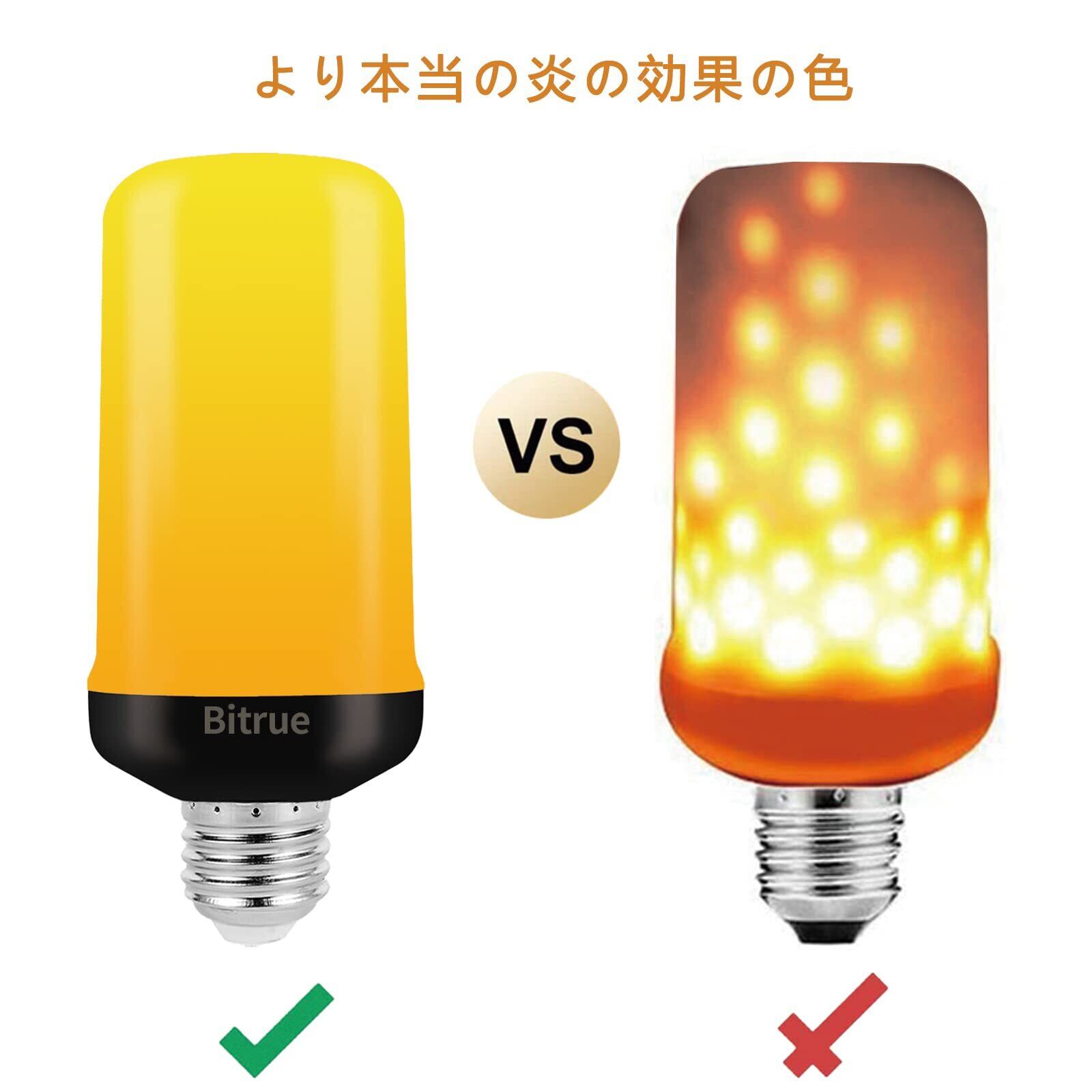 【グレードアップ】Bitrue炎電球、LED炎効果電球、E26口金、4モード点滅電球、重力センサー付き、休日のインテリア選び (2 個入り)
