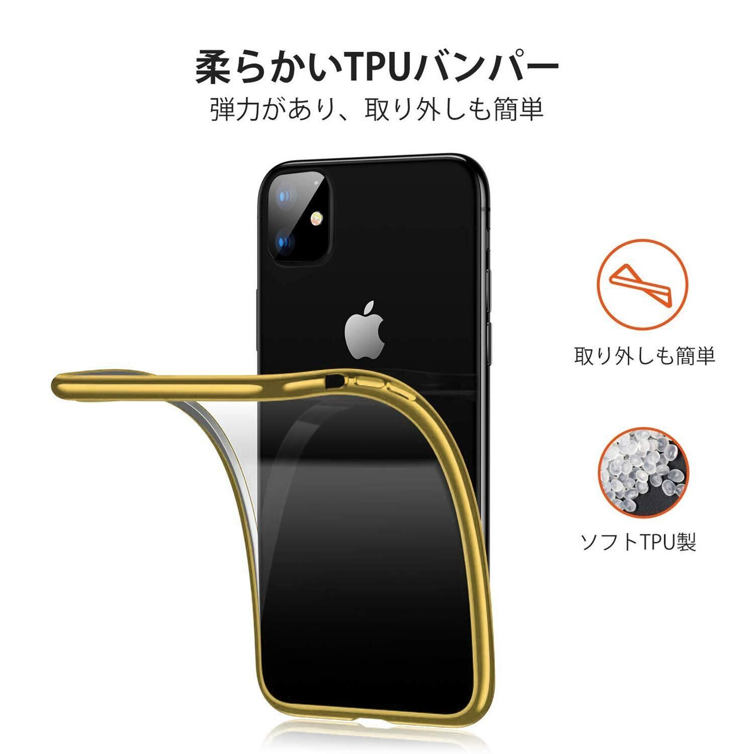 iPhone 11 ケース クリア 透明 tpu シリコン メッキ加工 スリム 薄型 6.1インチ スマホケース 耐衝撃 ストラップホール 黄変防止 一体型 人気 携帯カバー ゴールド