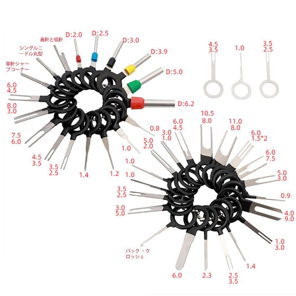 コネクターピン抜き端子除去ツール カーターミナル取り外しキーツール 端子抜き工具 カプラー コネクター 配線 端子 外し 抜き 41点セット