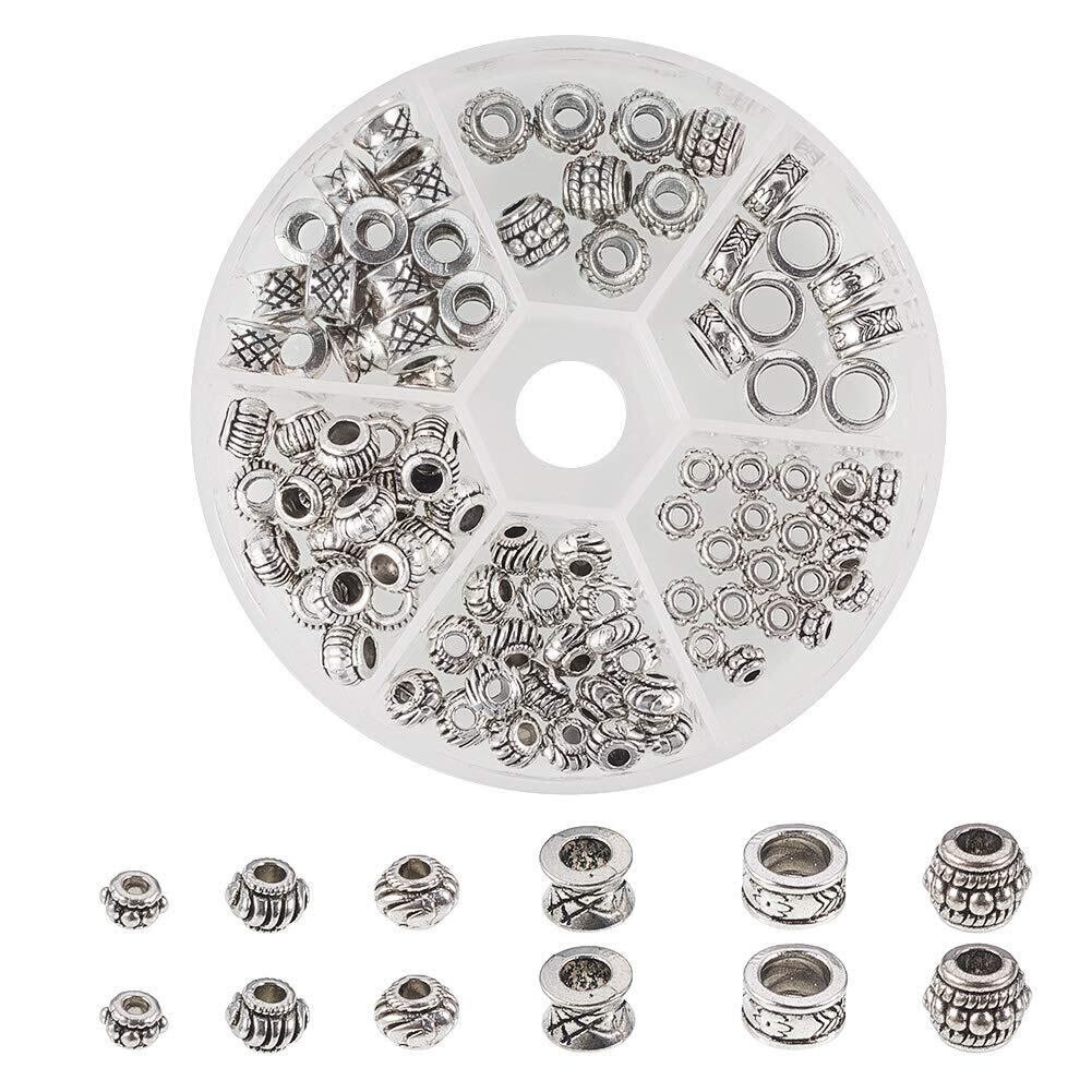 【特価商品】PH PandaHall 約130個/箱 6種 合金 ロンデル スペーサービーズ メタルビーズ チベットスタイル オーバルビーズ ラウンド カラム ビーズ DIY用 クラフト ジュエリー用 アクセサリーパーツ 手作り素材 混合色 | allstore2