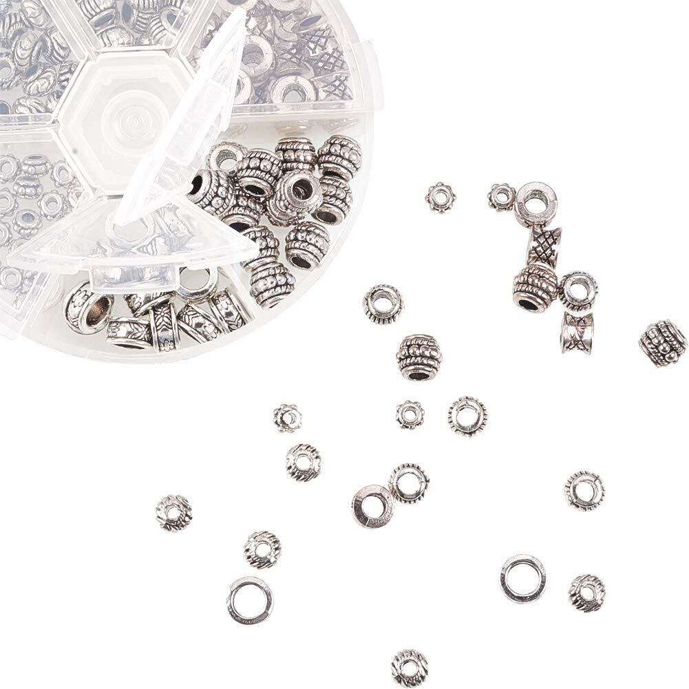 PH PandaHall 約130個/箱 6種 合金 ロンデル スペーサービーズ メタルビーズ チベットスタイル オーバルビーズ ラウンド カラム ビーズ DIY用 クラフト ジュエリー用 アクセサリーパーツ 手作り素材 混合色
