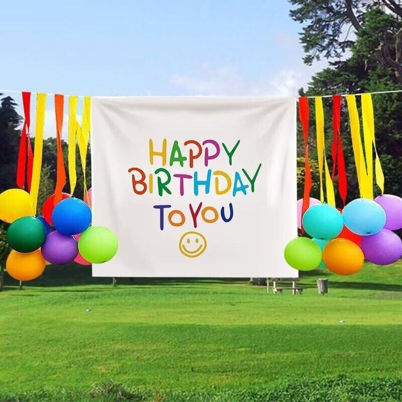 【新春セール】タペストリー 特大ケーキバルーン HAPPY BIRTHDAY 飾り付け 男の子 女の子 おしゃれ カラフル 可愛い プレゼント 飾り付け パーティー 写真背景 インストールツール付き | allstore2