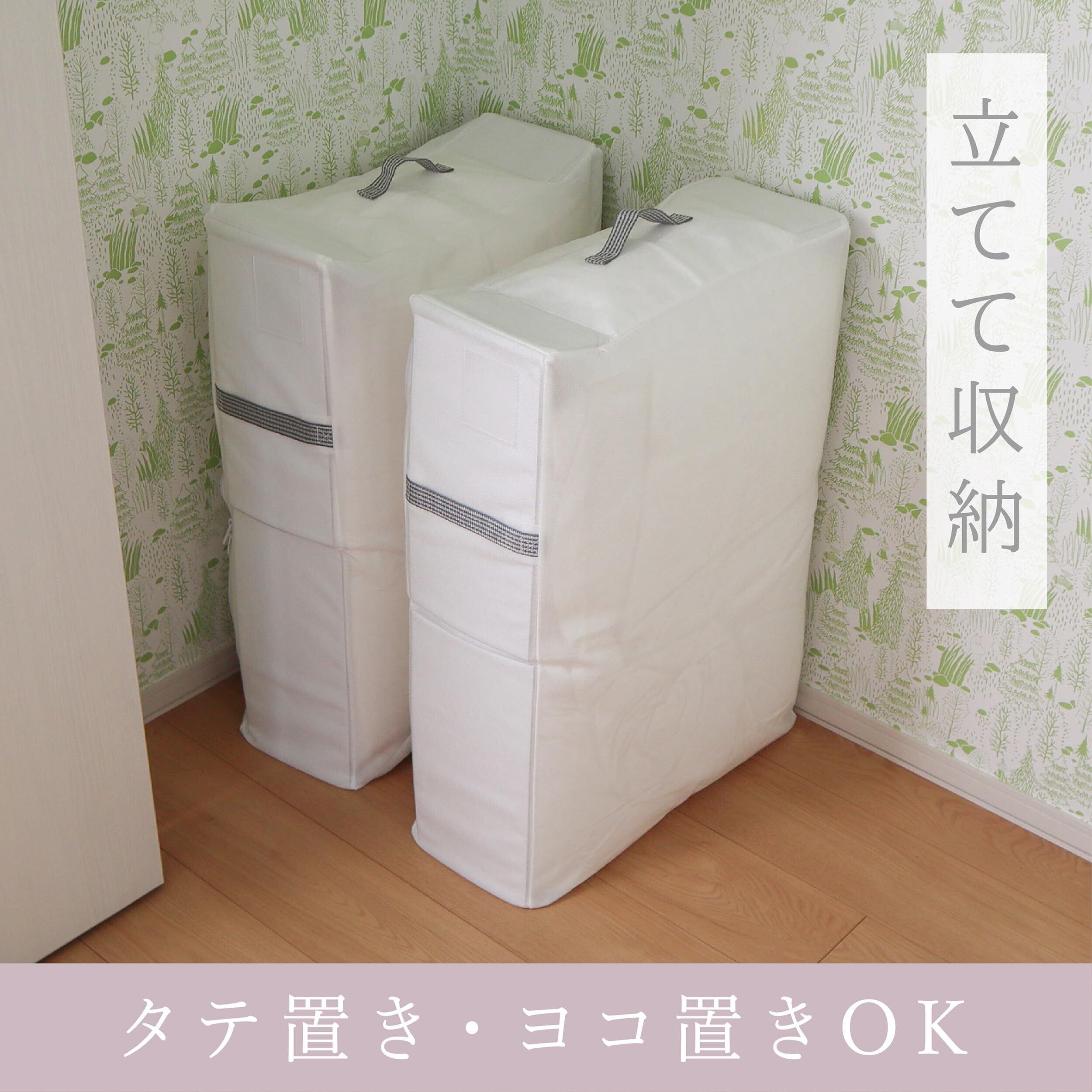 東和産業 布団収納袋 収納袋 Kufu 立てられる収納袋 ホワイト 羽毛布団 自立 70×50×18cm 芯板入 掛け布団用 不織布 持ち手付 大容量 シングル ダブル 透明窓 コンパクト 縦