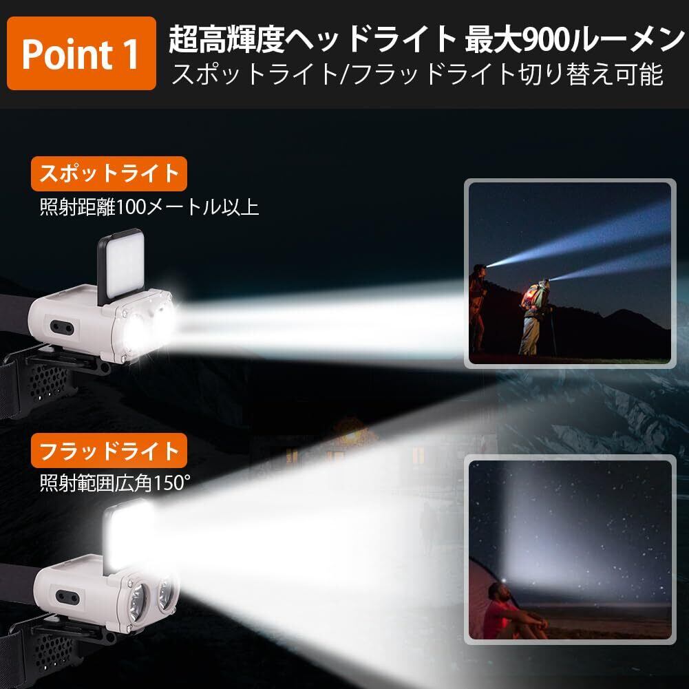 【新着商品】キャップライト ヘッドライト 充電式 帽子ライト 【4~70時間点灯 30~900ルーメン 無段階調光 赤色サブライト搭載 180°角度調節可能 IPX4防水】 ledヘッドライト 釣り キャンプ用 収納ボックス付き 日本語取扱説明書付き