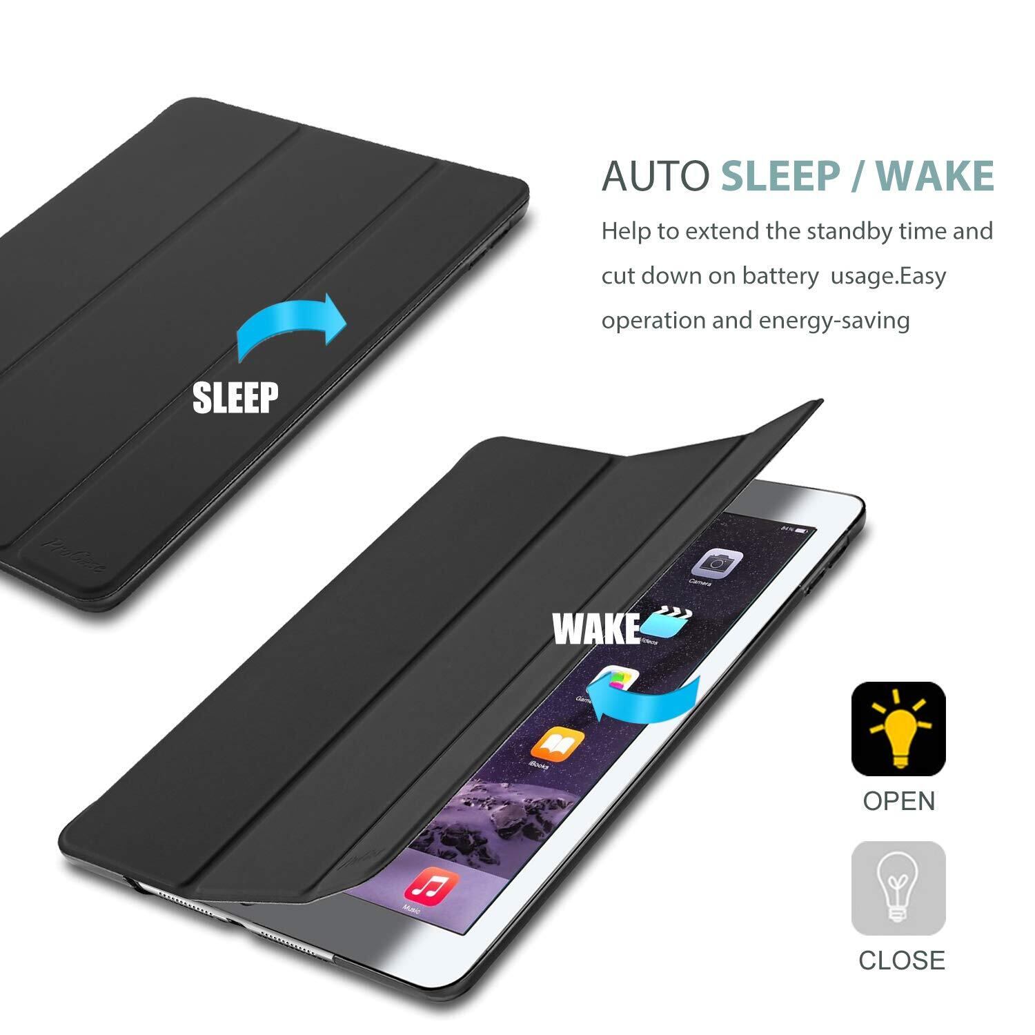 ProCase iPad Air 2(2014発売)ケース スマート 超スリム スタンド フォリオ保護ケース 半透明フロスト バックカバー 対応端末:Apple iPad Air 9.7" 第2世代(A1566 A1567)-ブラック