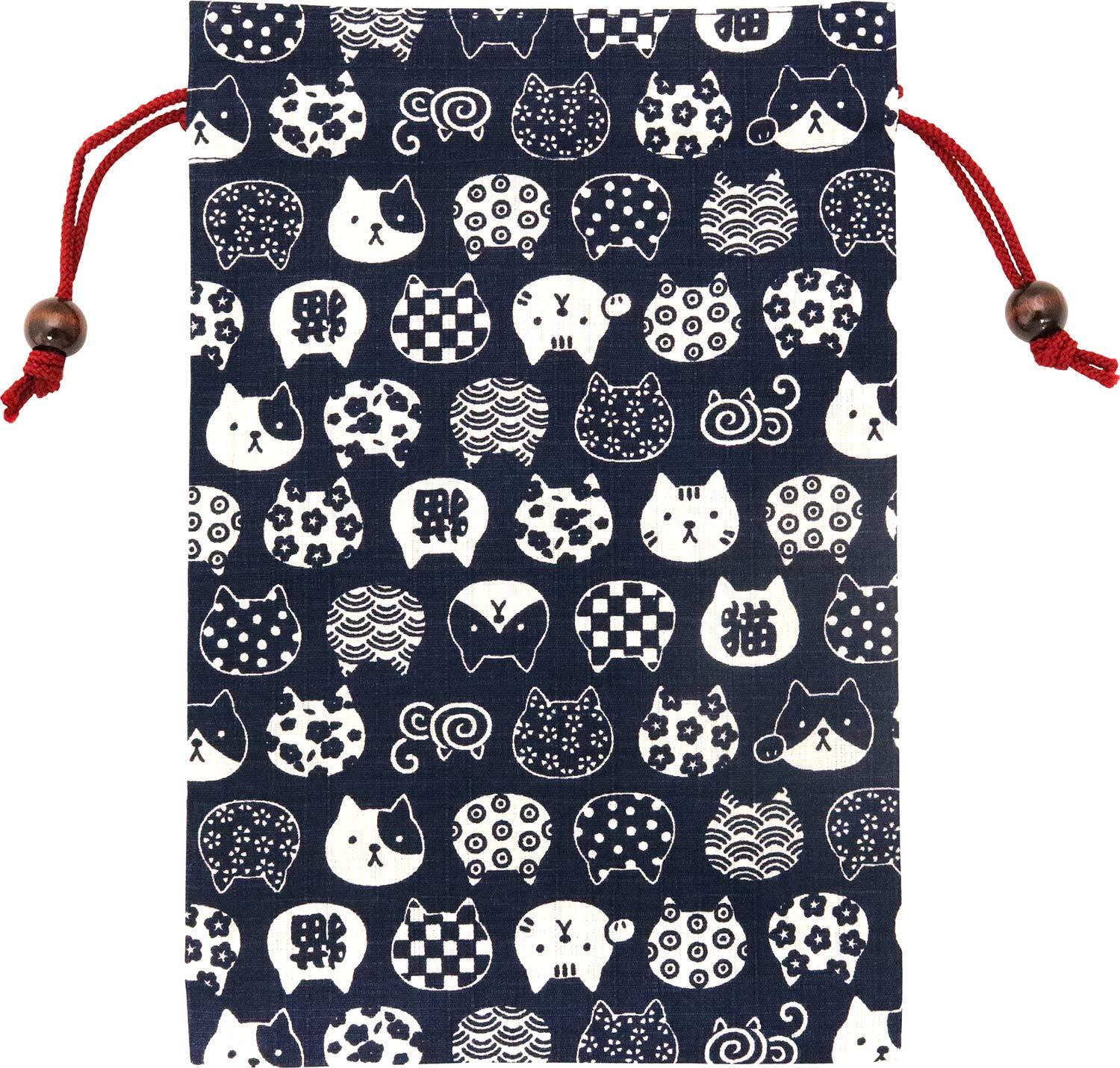 京佑 日本製 御朱印帳 巾着 袋 ケース 入れ ご朱印帳 にゃんこもん 猫 紺 18×26.5cm