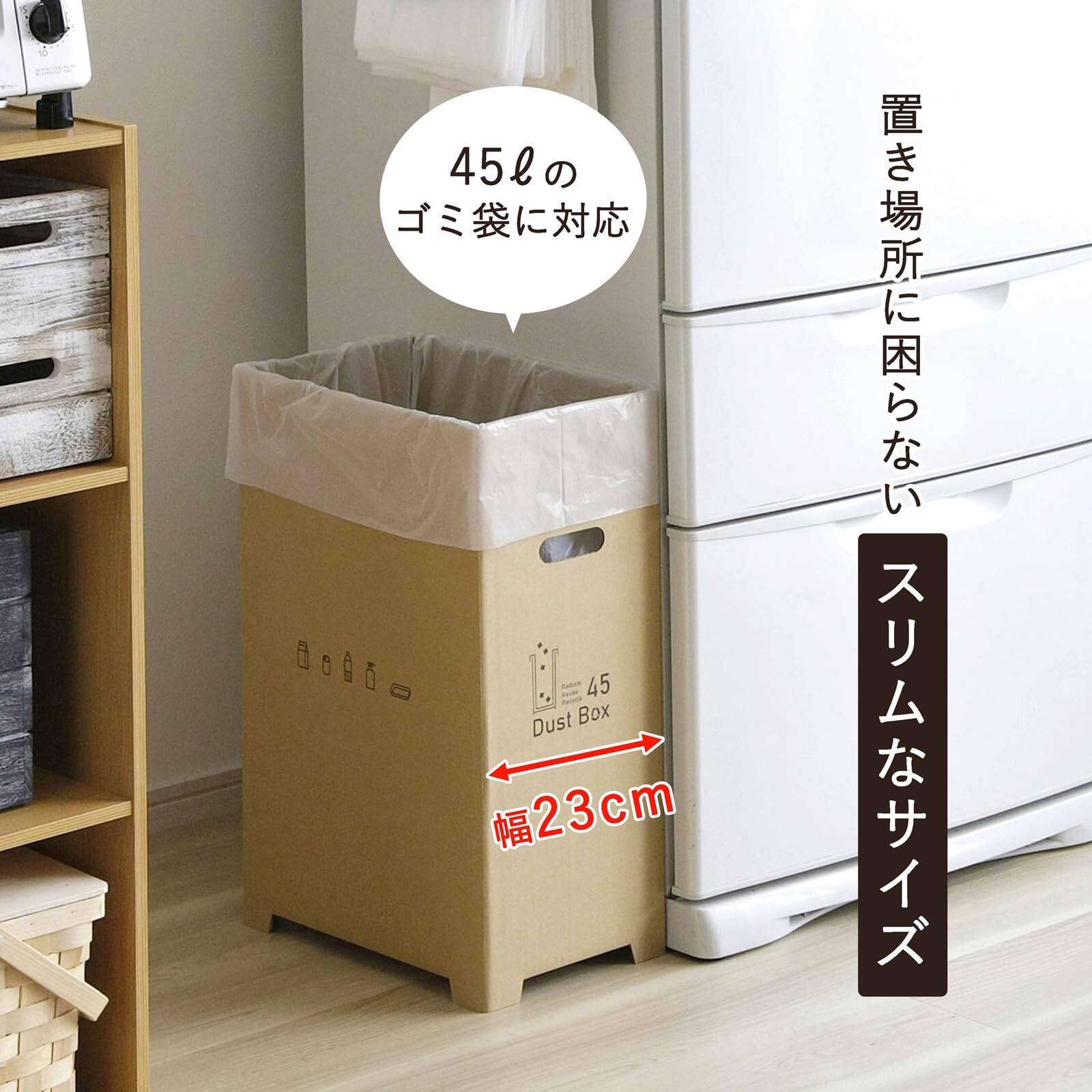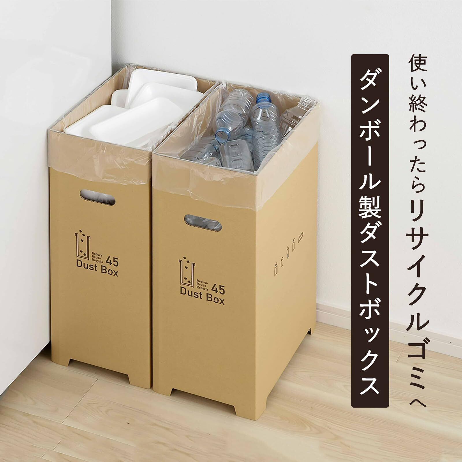 下村企販 リサイクルできるダンボール製ゴミ箱 45L 2個組 【日本製】 隙間に置けるスリム幅 資源ごみの分別に 簡単組み立て 折りたたんで収納 ダストボックス 燕三条 42696